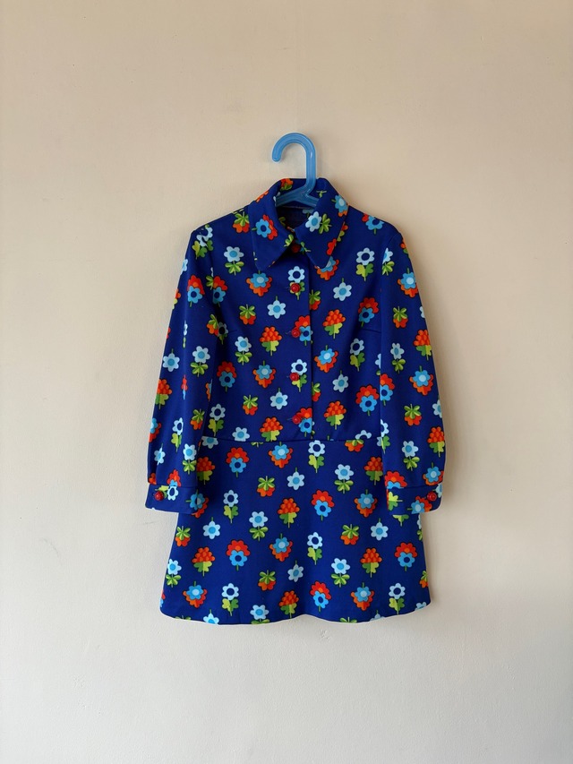 1970s made in France 素材 : polyester 100% size : おおよそ 120 肩幅 32 cm 身幅 40 cm 袖丈 42 cm 着丈 65 cm フランス製のポリエステル生地 レトロで可愛いらしい雰囲気のドレスです。 目立った汚れやダメージはなく 綺麗な状態です。