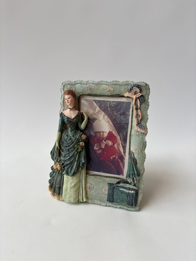1970s made in USA size : タテ 20 cm × ヨコ 14 cm アメリカにて買付け致しました、陶器フレームの写真立てです。 古い写真がフレームインされていますので、このまま飾っていただいても 中身を入れ替えてもご利用いただけます。 上品さと温かみのあるフレームです。 表面はアクリル板が入っています。 後ろに支えが付いていますので自立します。