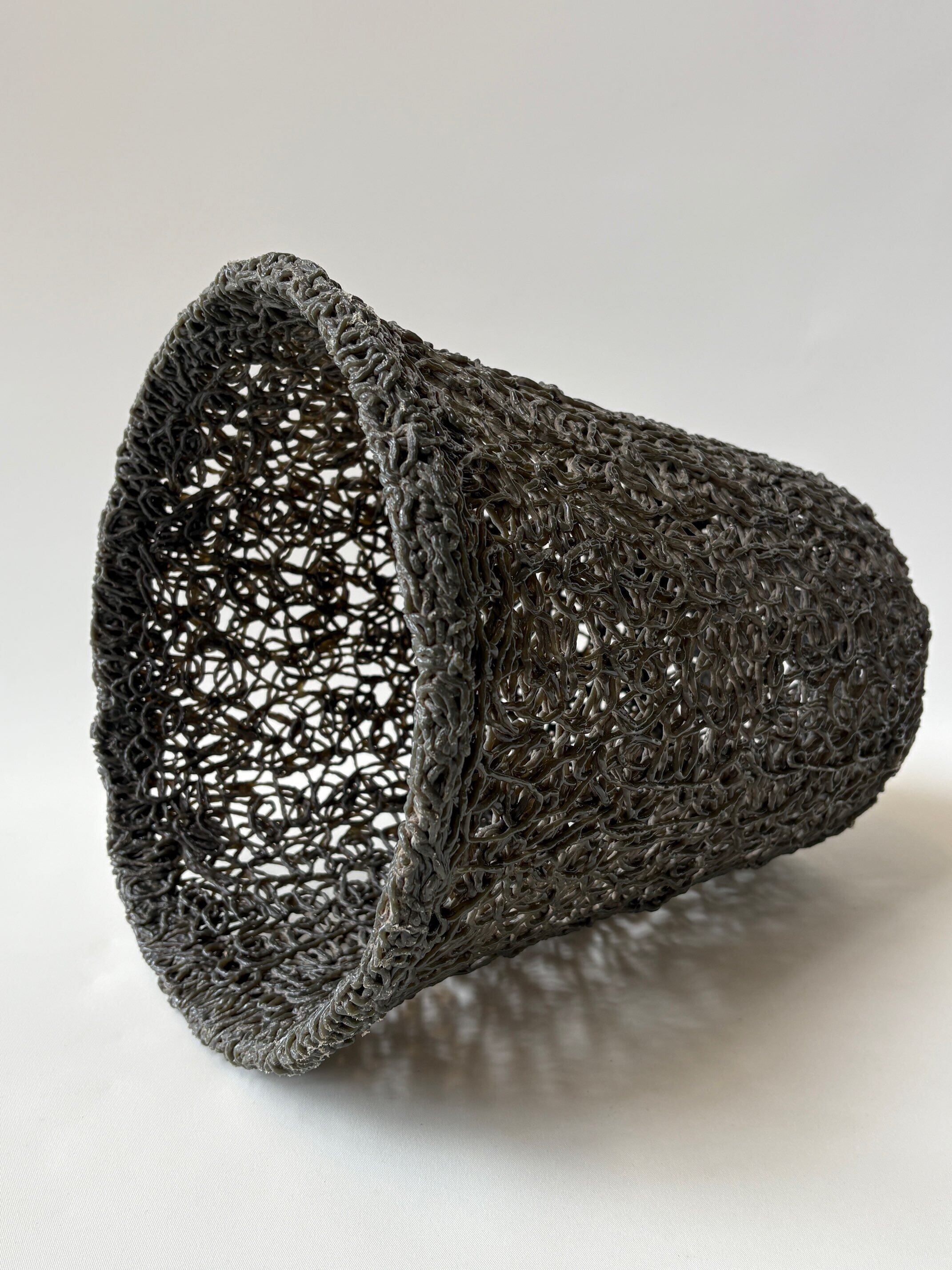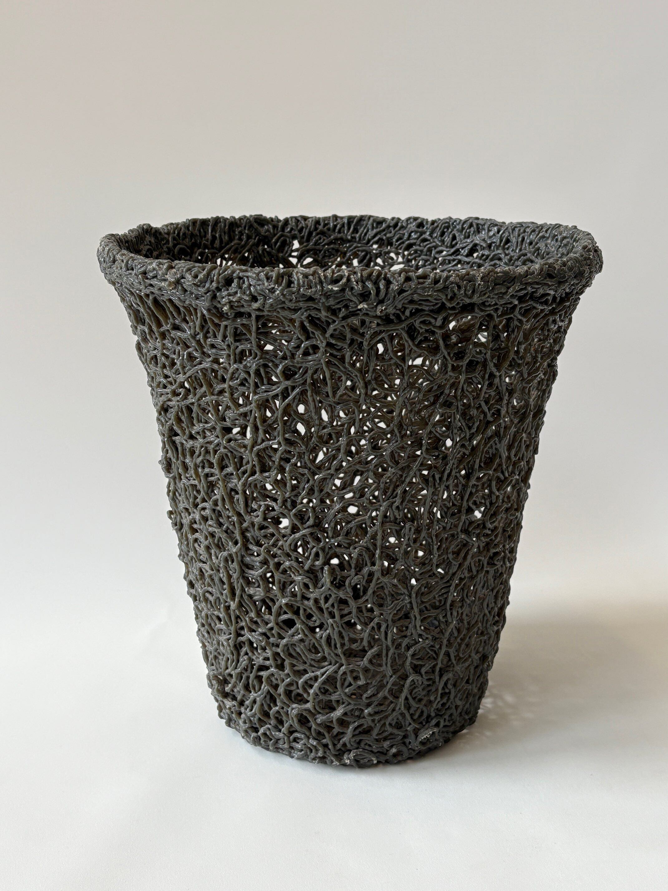 同年代に流行のした 照明で見る 樹脂をスパゲティ状に固めて製作された ユニークなバスケットです。