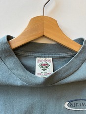 商品説明 : フロント、バックプリント共にさりげなくセンスの効いたプリントが良く、程良くしっかりしたコットン100%のボディの風合いと色目が良いです。
