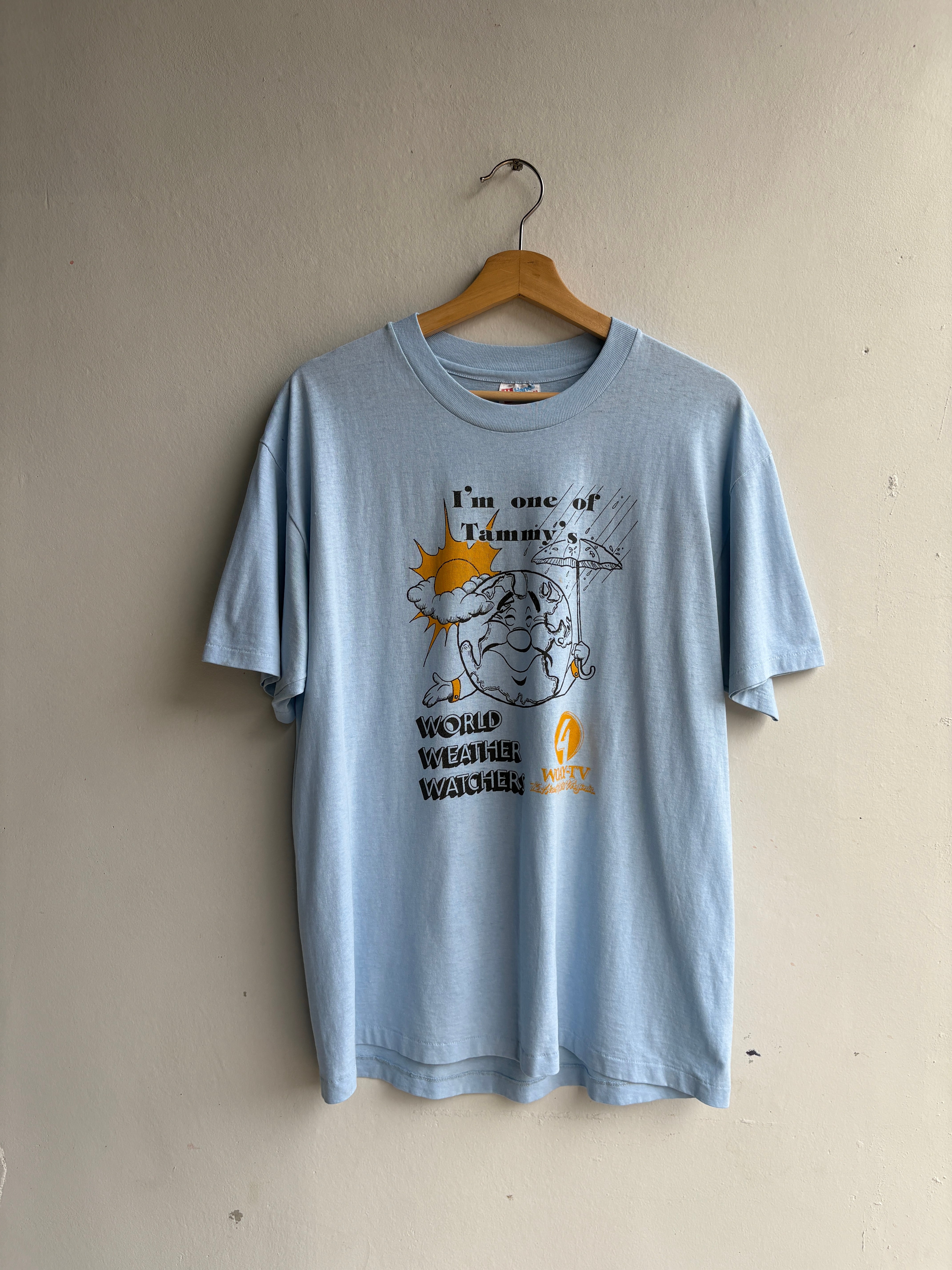 商品説明 : 天気を司る可愛いキャラクターが綺麗なサックスブルーのボディに良く合い 雰囲気のよい一枚です。