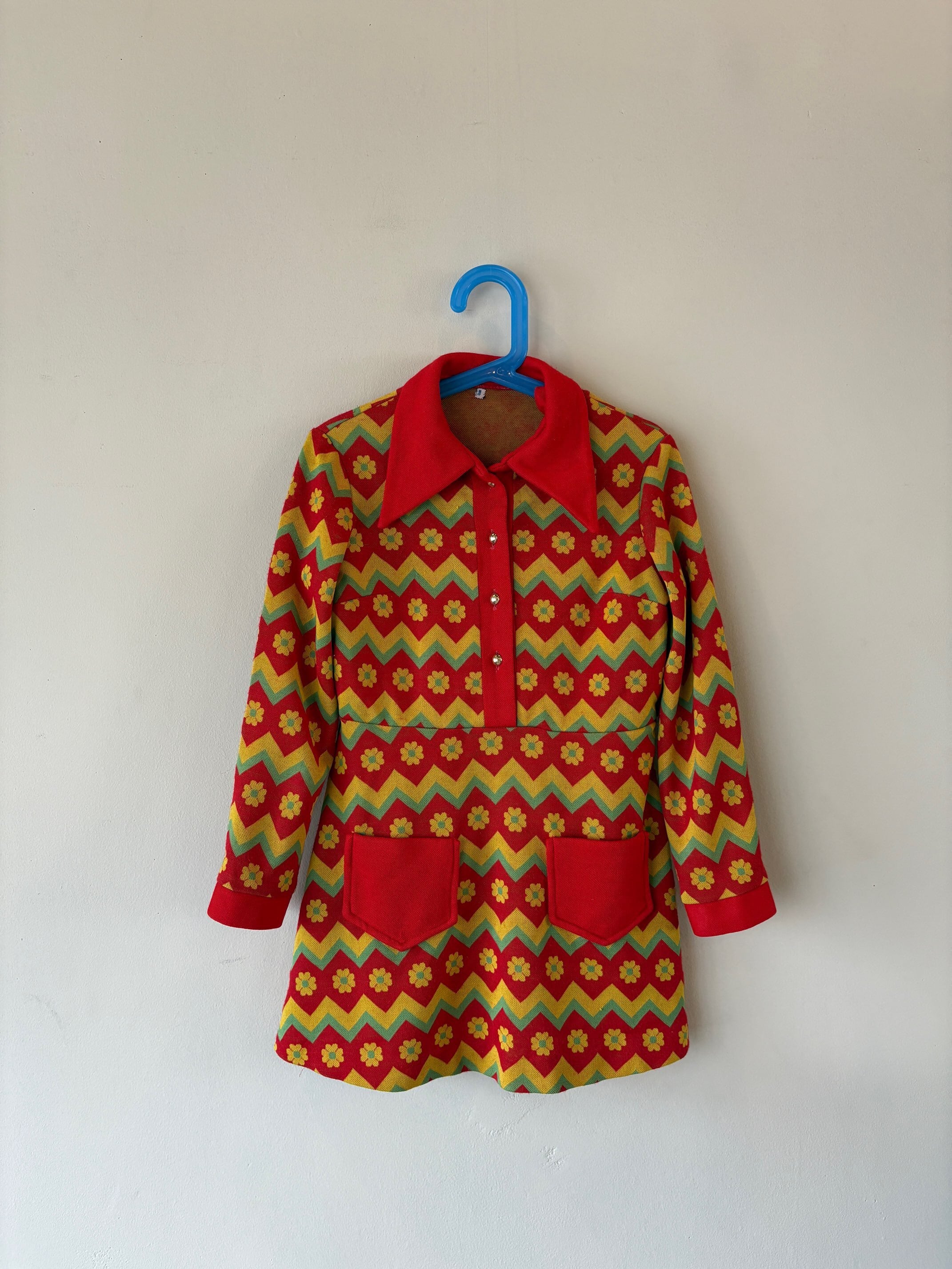 フランス製のポリエステル生地 レトロで可愛いらしい雰囲気のドレスです。