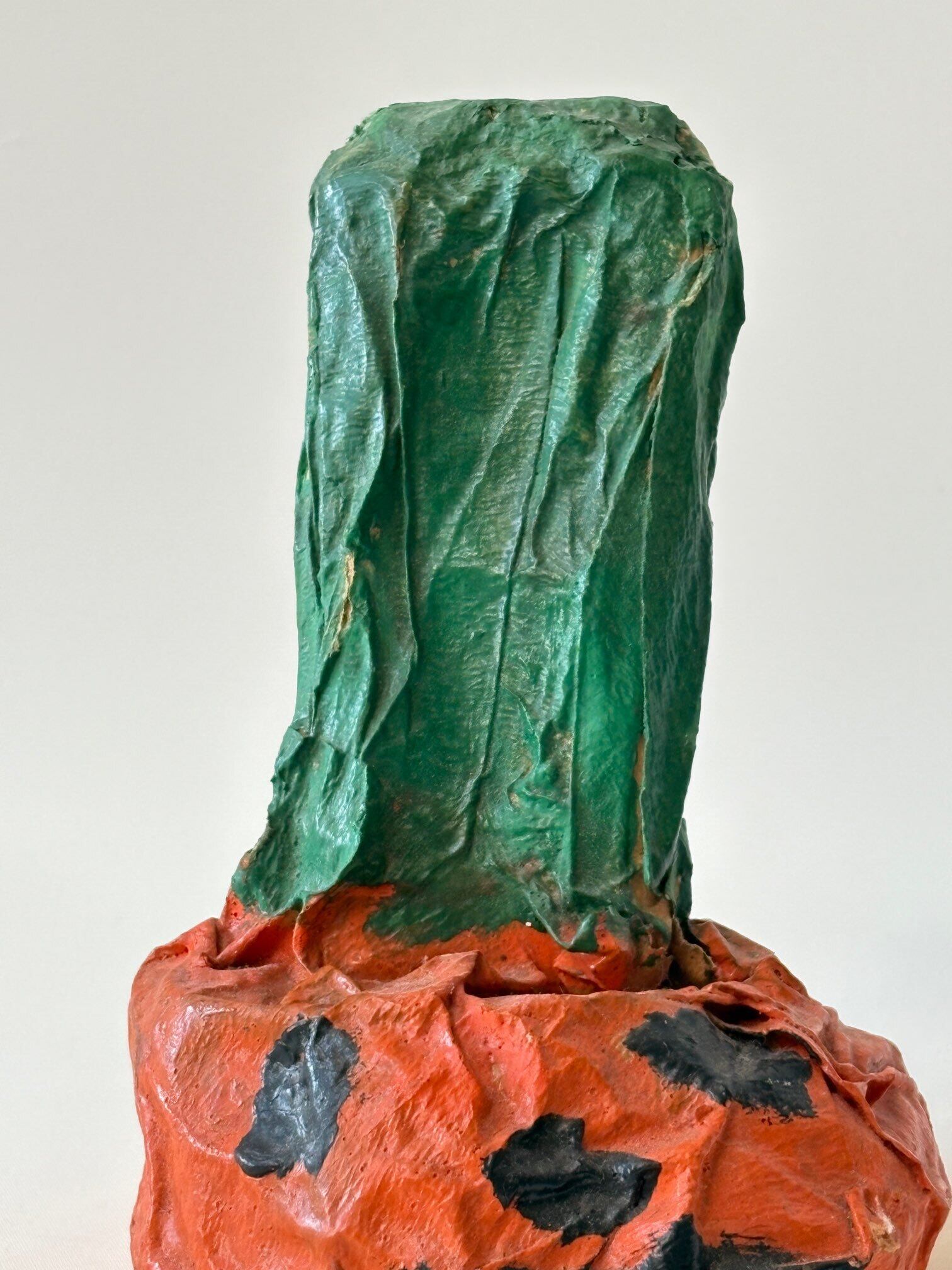 新聞紙を固めた物を土台に堅い紙で表面を仕上げ上からペイントしているので カチカチに仕上がっています。