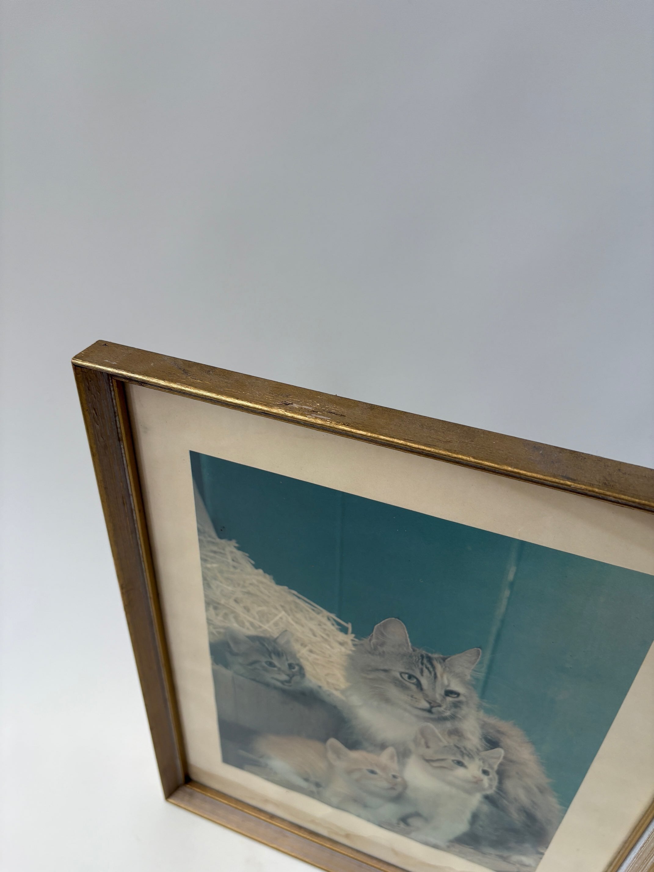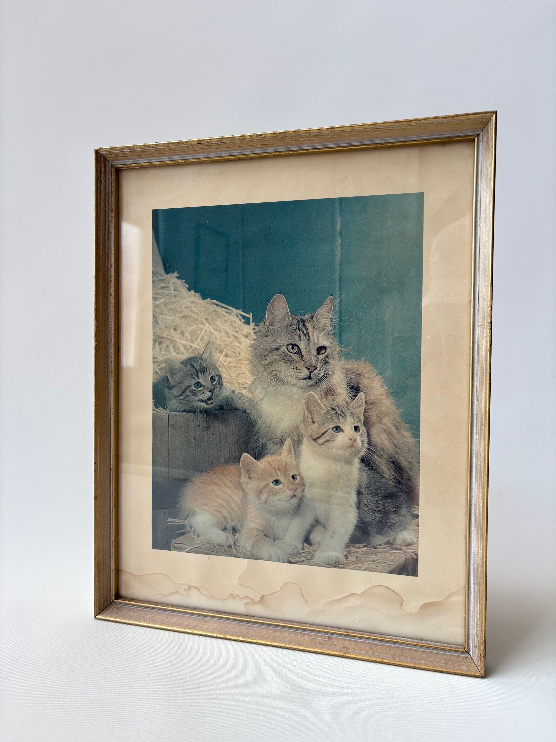 可愛い猫の家族の写真が入っています。このまま飾っていただいても 中身を入れ替えてもご利用いただけます。