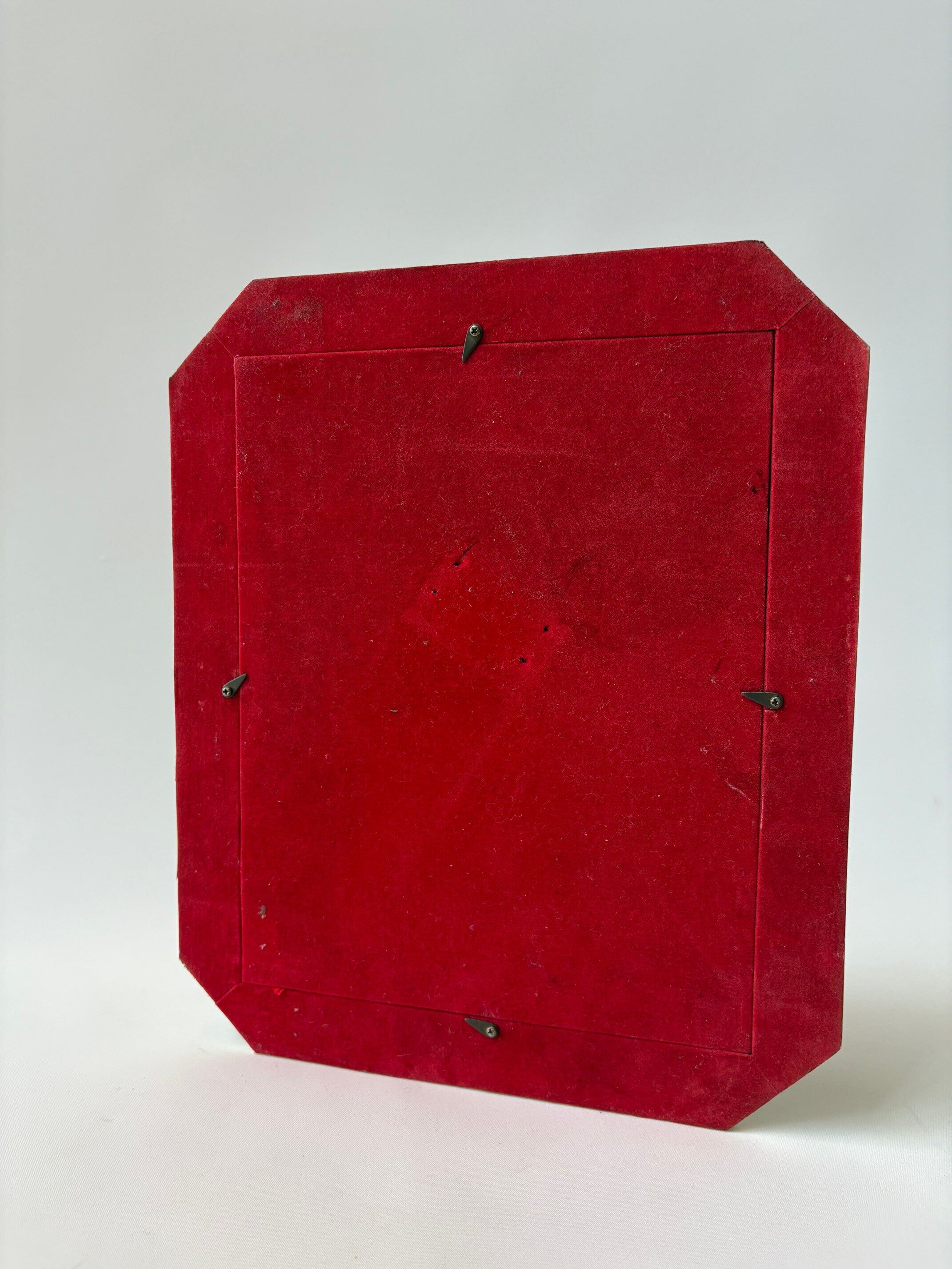 表面はガラスが入っており 中の、赤いベロアのマットが高級感を出しています。