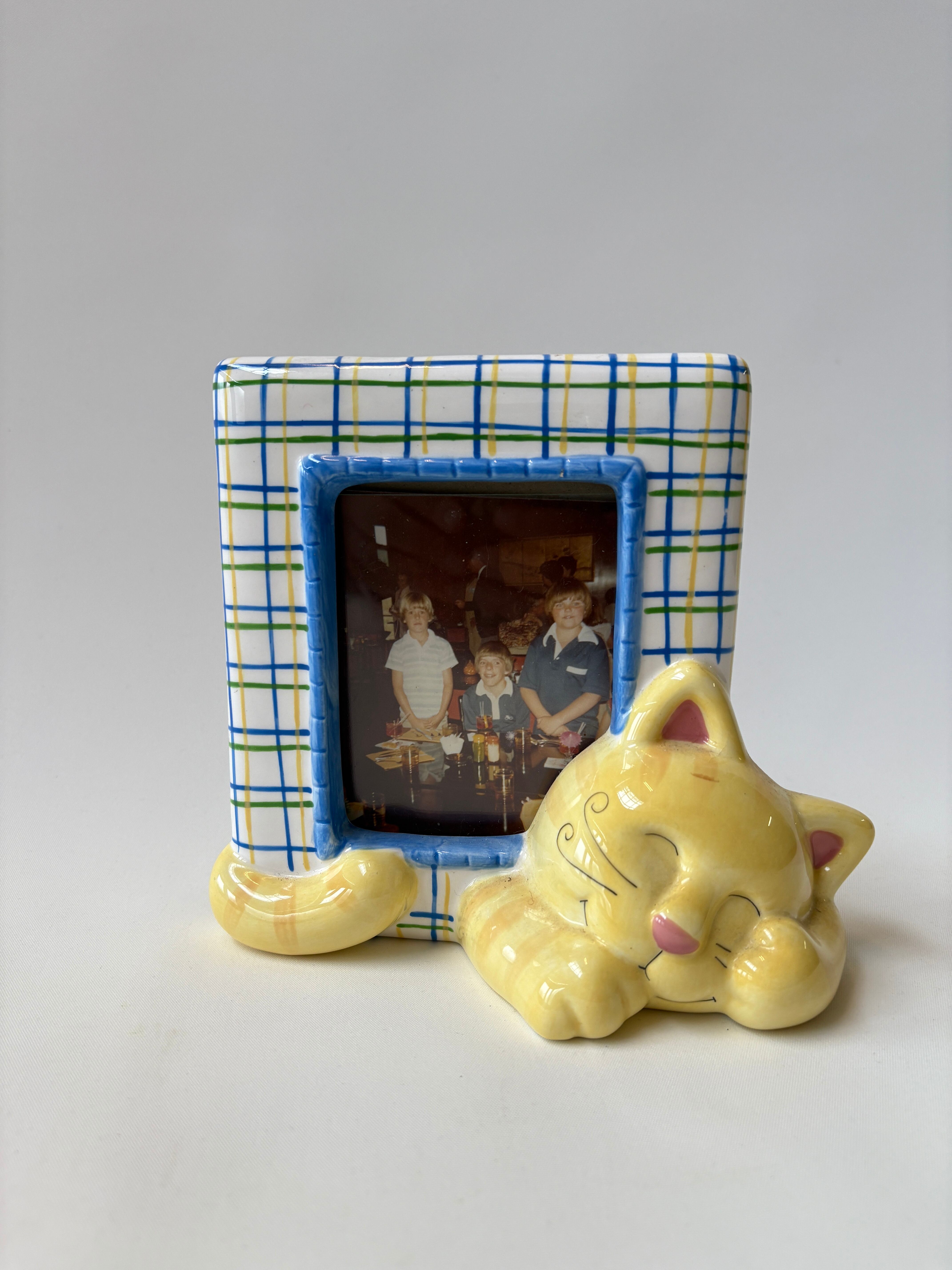 アメリカにて買付け致しました、陶器製 可愛らしい 猫ちゃんフレームの写真立てです。