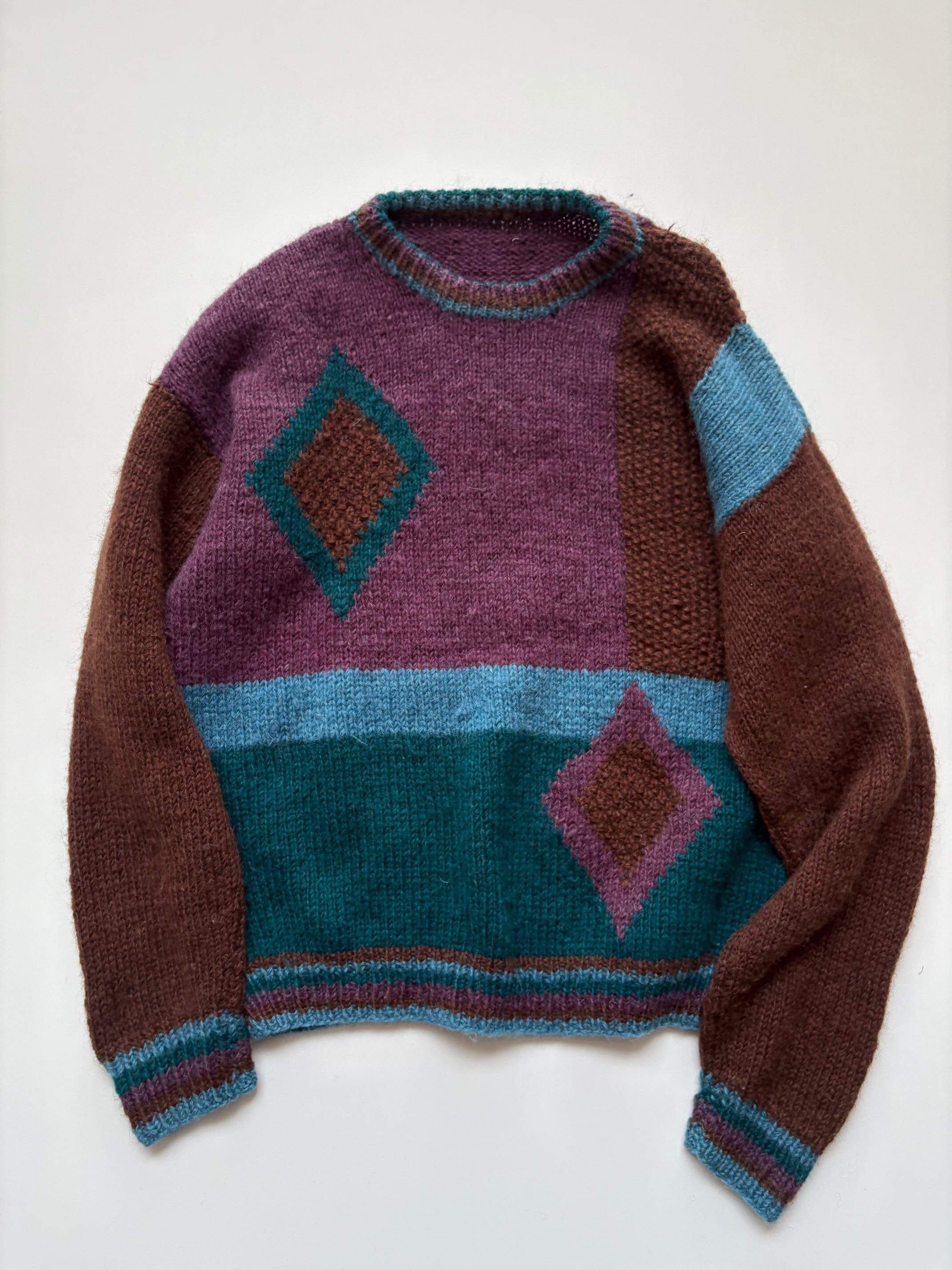 配色や全体の型バランスが良く 手編み物としてはクオリティの高さが魅力的な一着です。