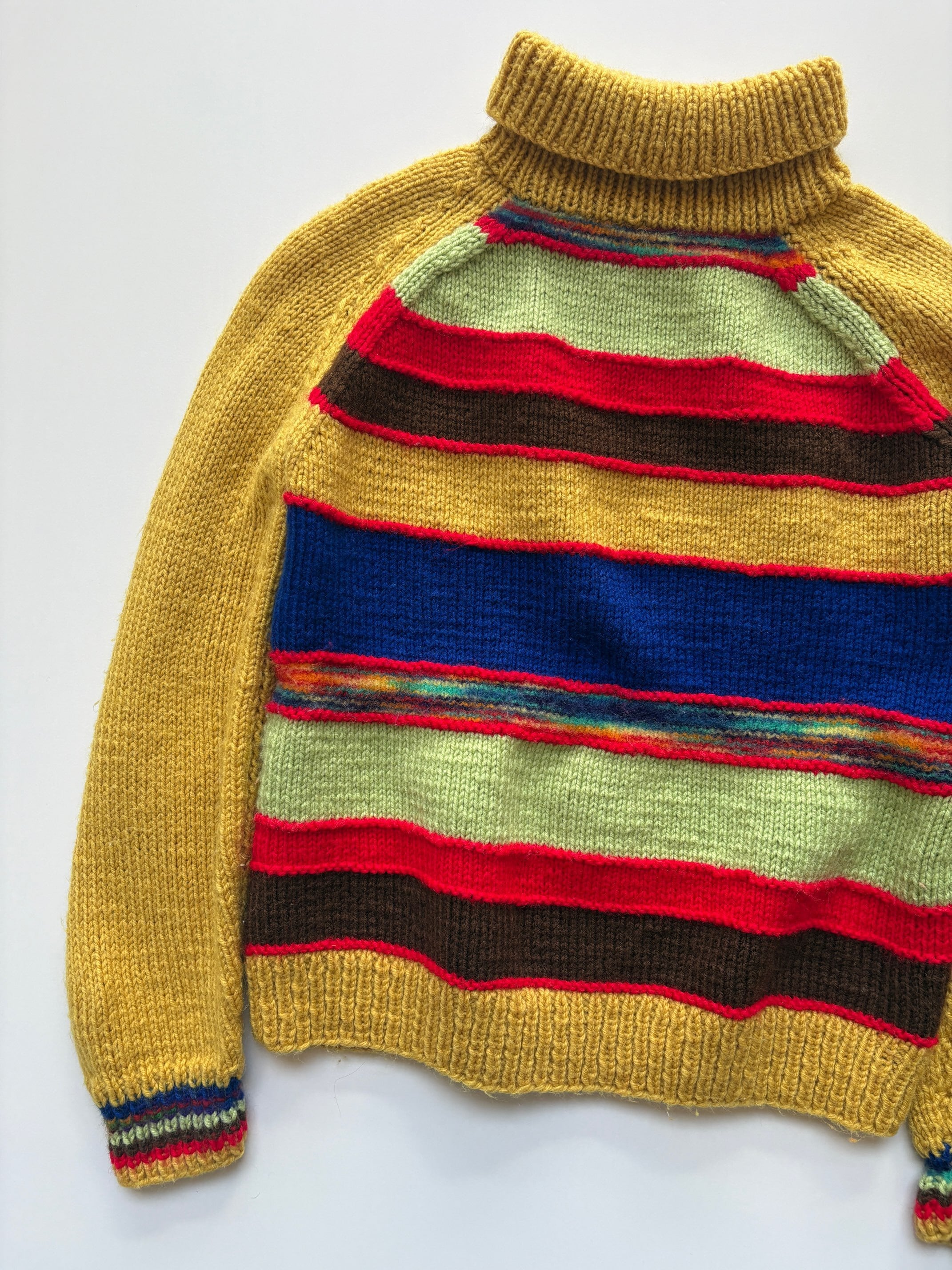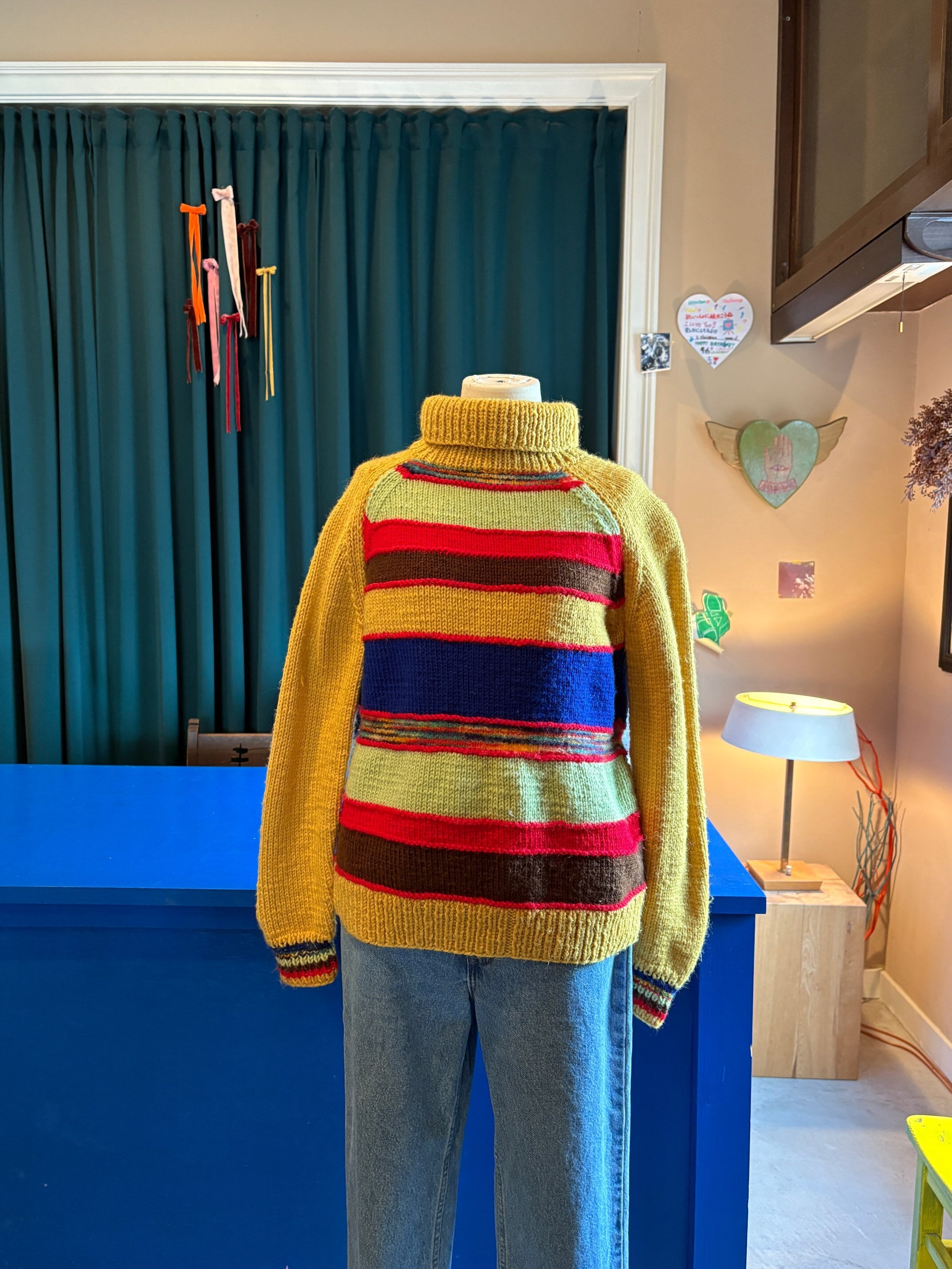 チクチク感は少なく 女性がスッキリとしたサイズ感で着れるセーターです。
