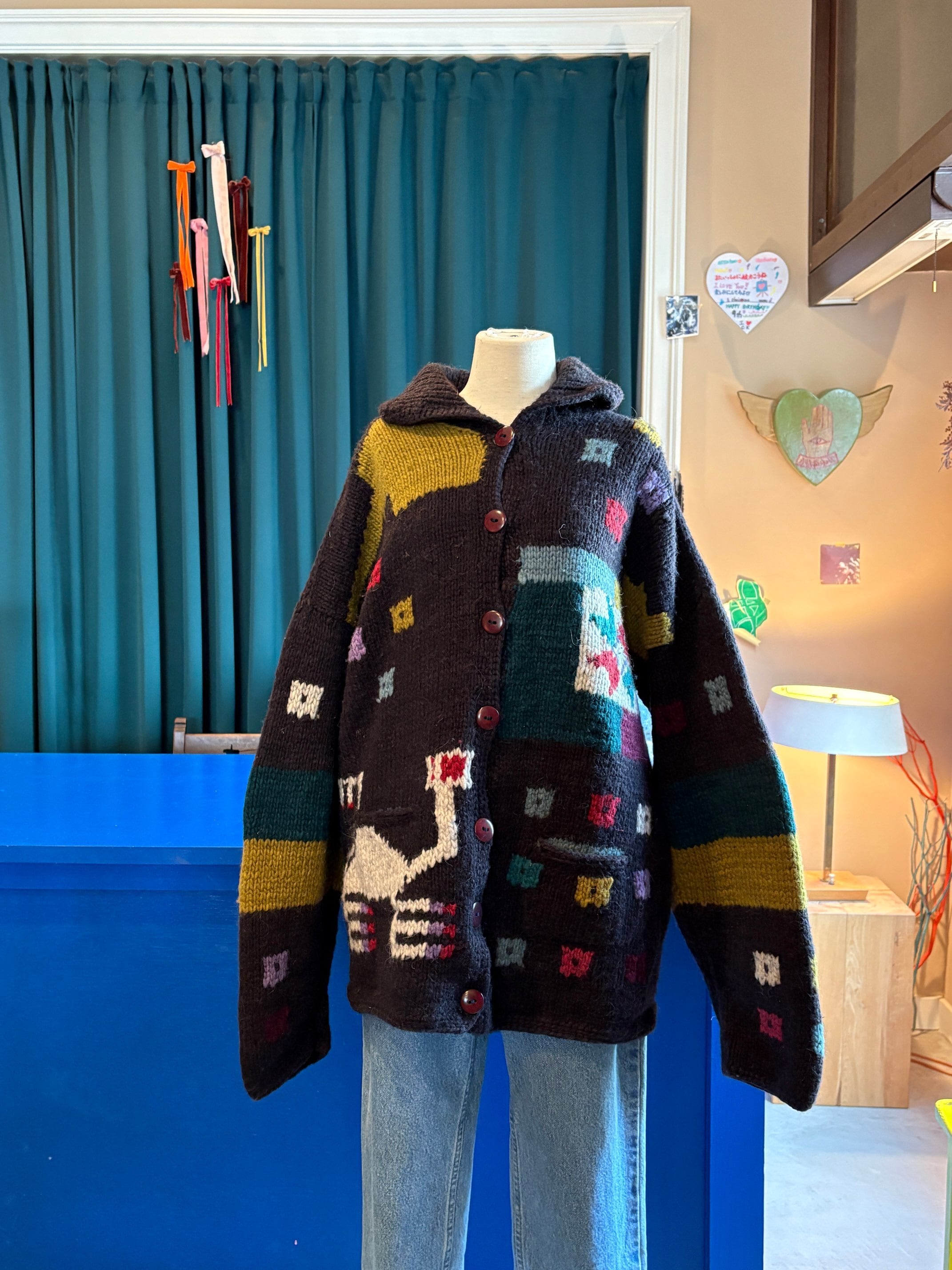 商品説明 : 南米特有のざっくり編まれた 配色、デザインセンスの良い1着です。