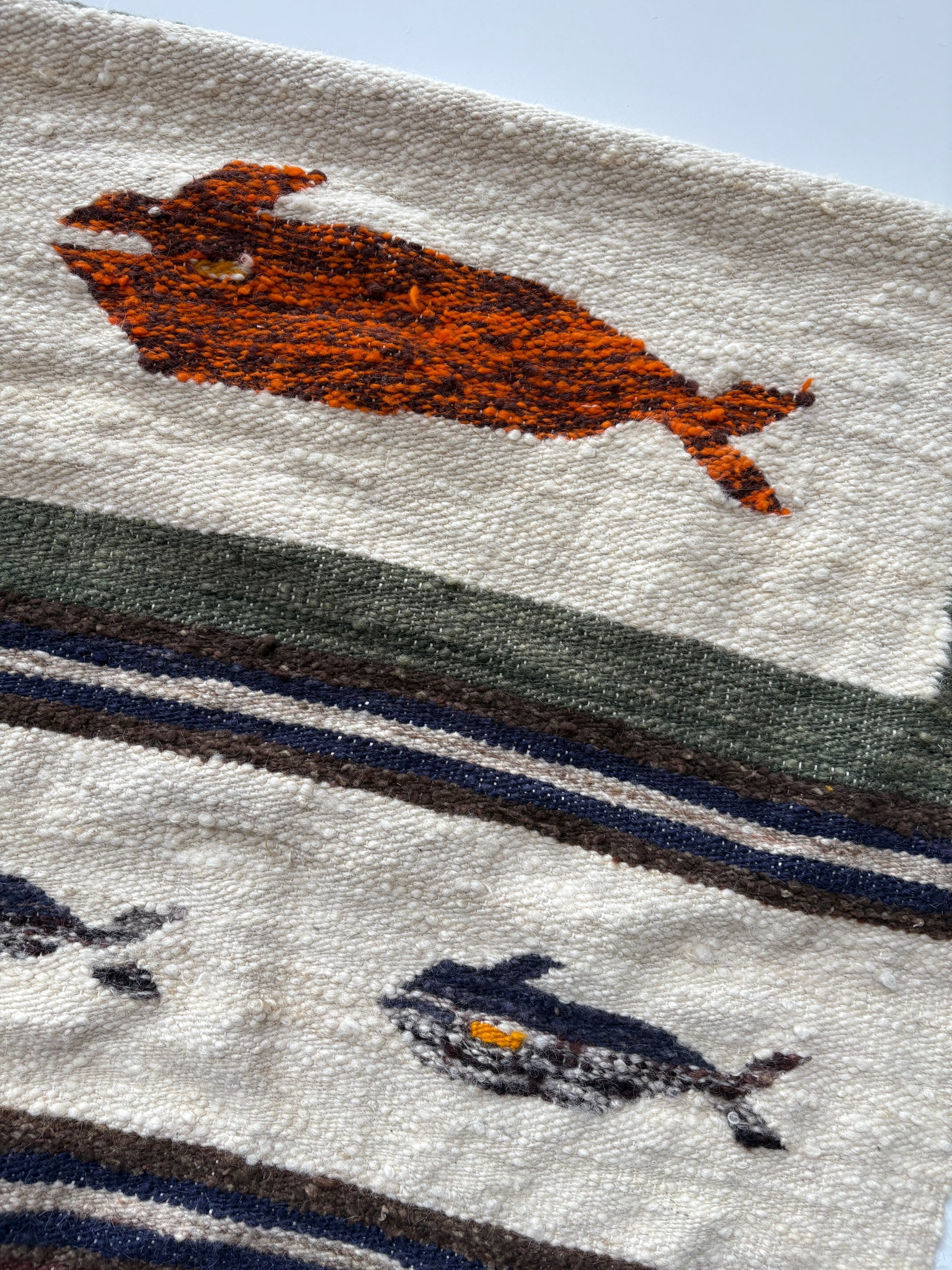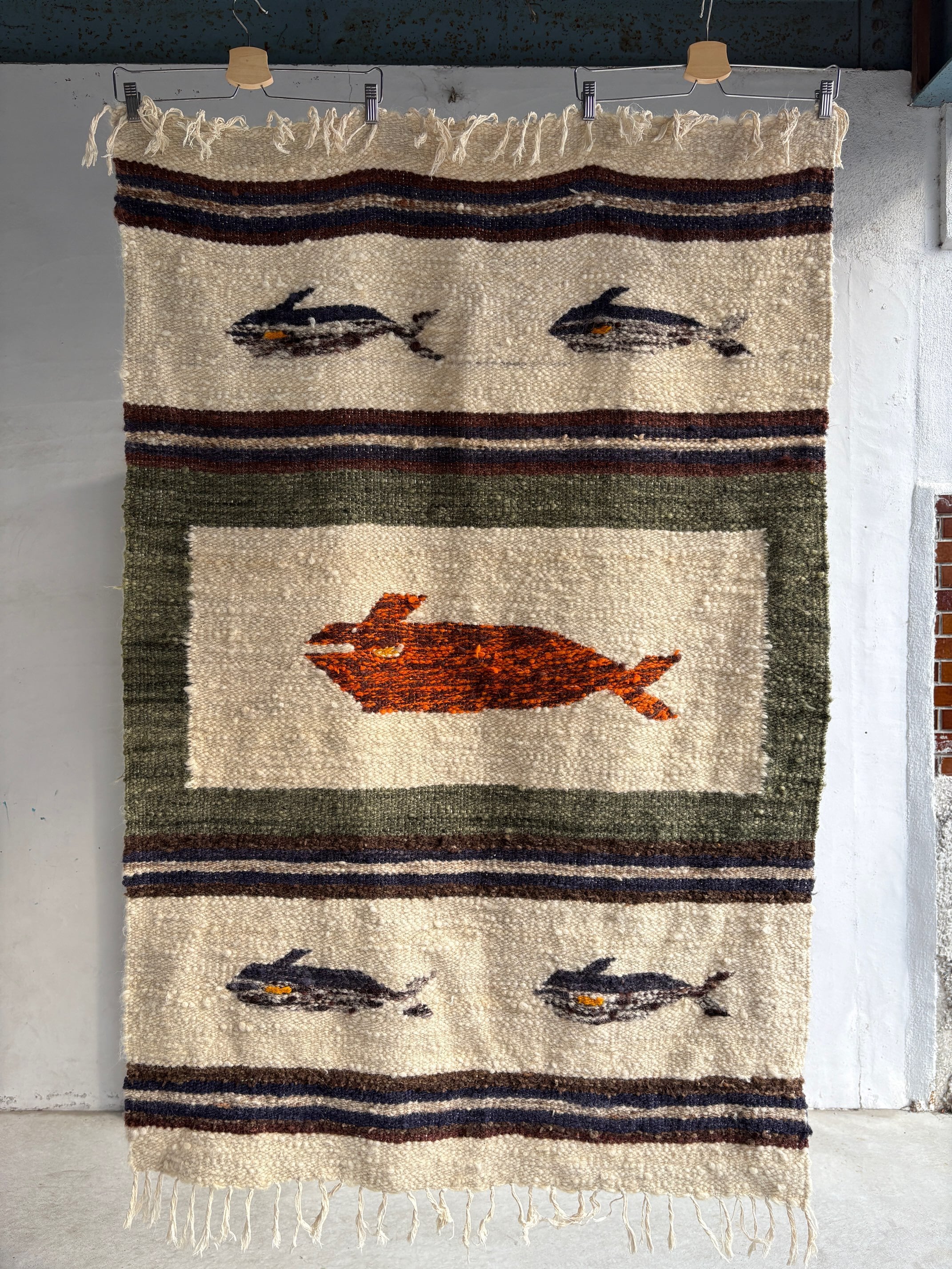 こちらはミッドセンチュリー 期に製作された 珍しい抽象的な魚柄がとても魅力的です。