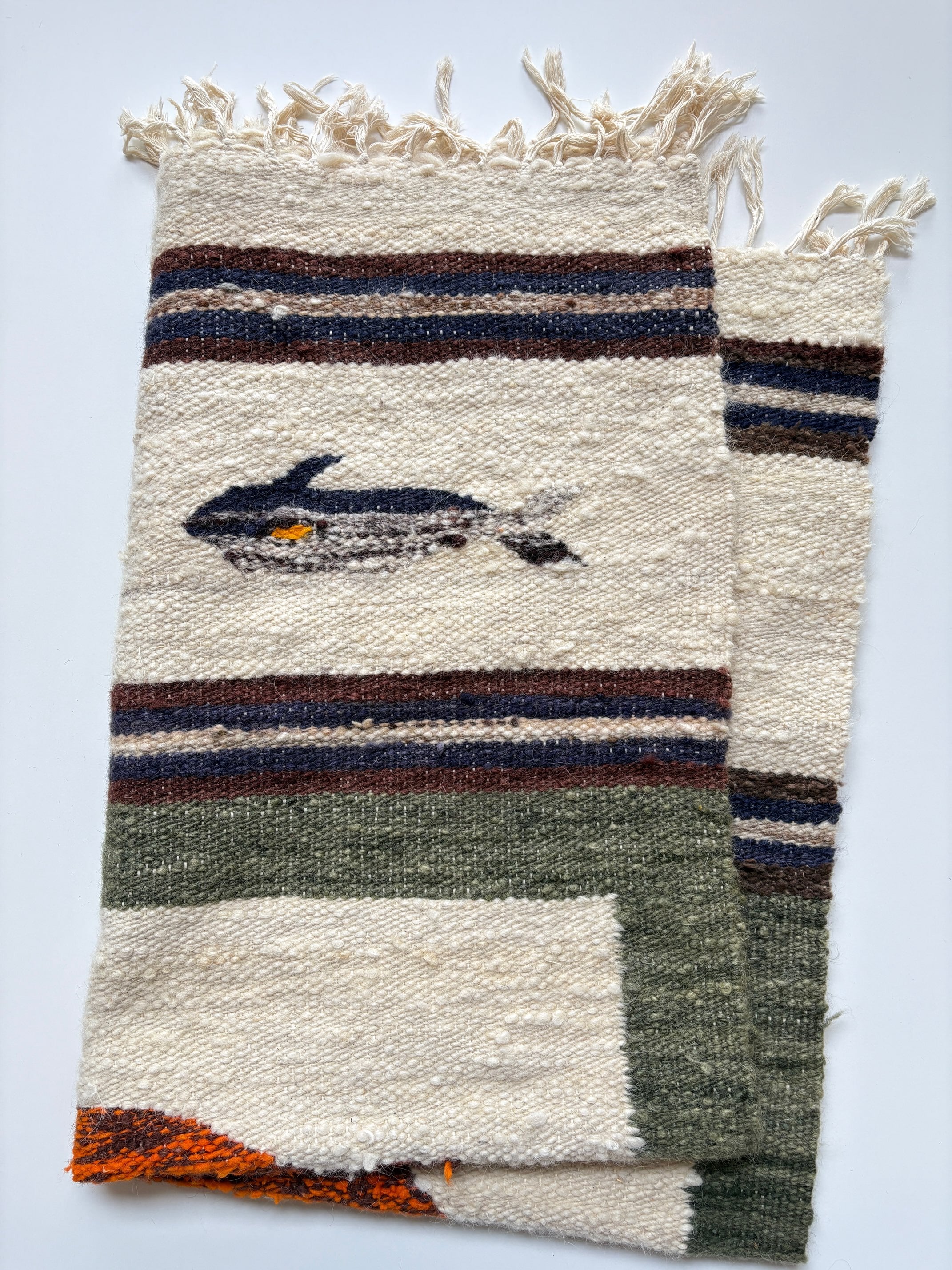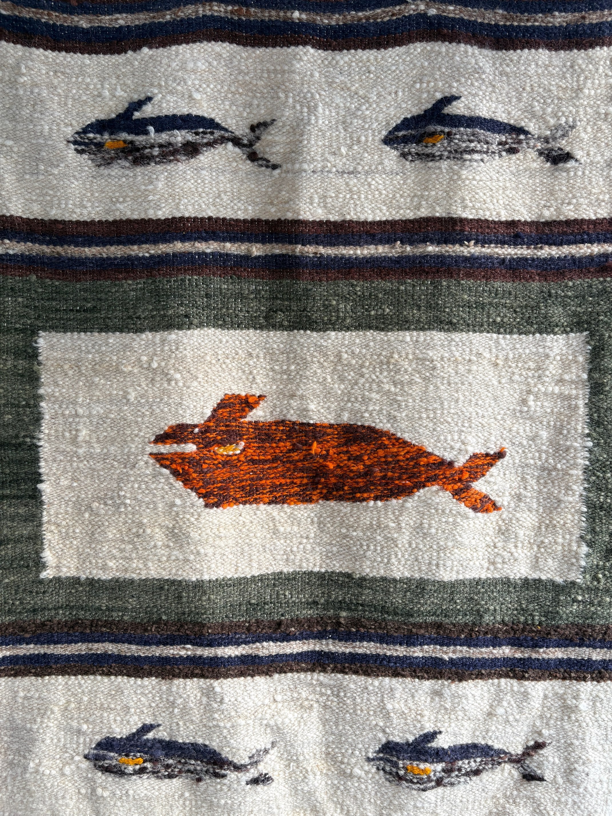 キリムなどと同様に、平織りの一種であるつづれ織りの技法で織られています。模様は表も裏も同じで、模様の左右が逆になりますが両面とも使用可能です。