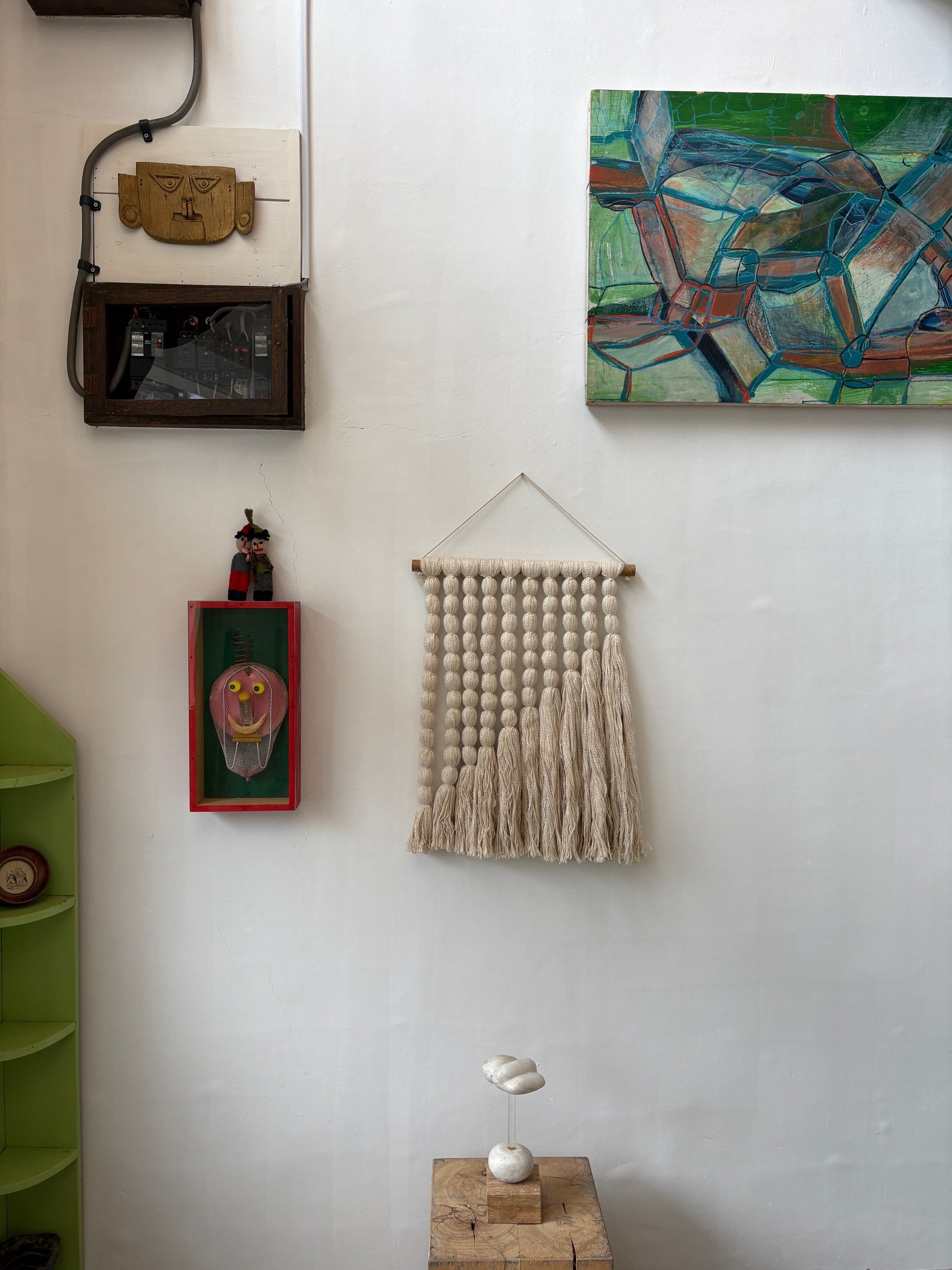 商品説明 : アメリカ オレゴン州 ポートランドにて買付け致しました、柔らかい綿糸を丁寧に編んで製作された 雰囲気の良いタペストリーです。