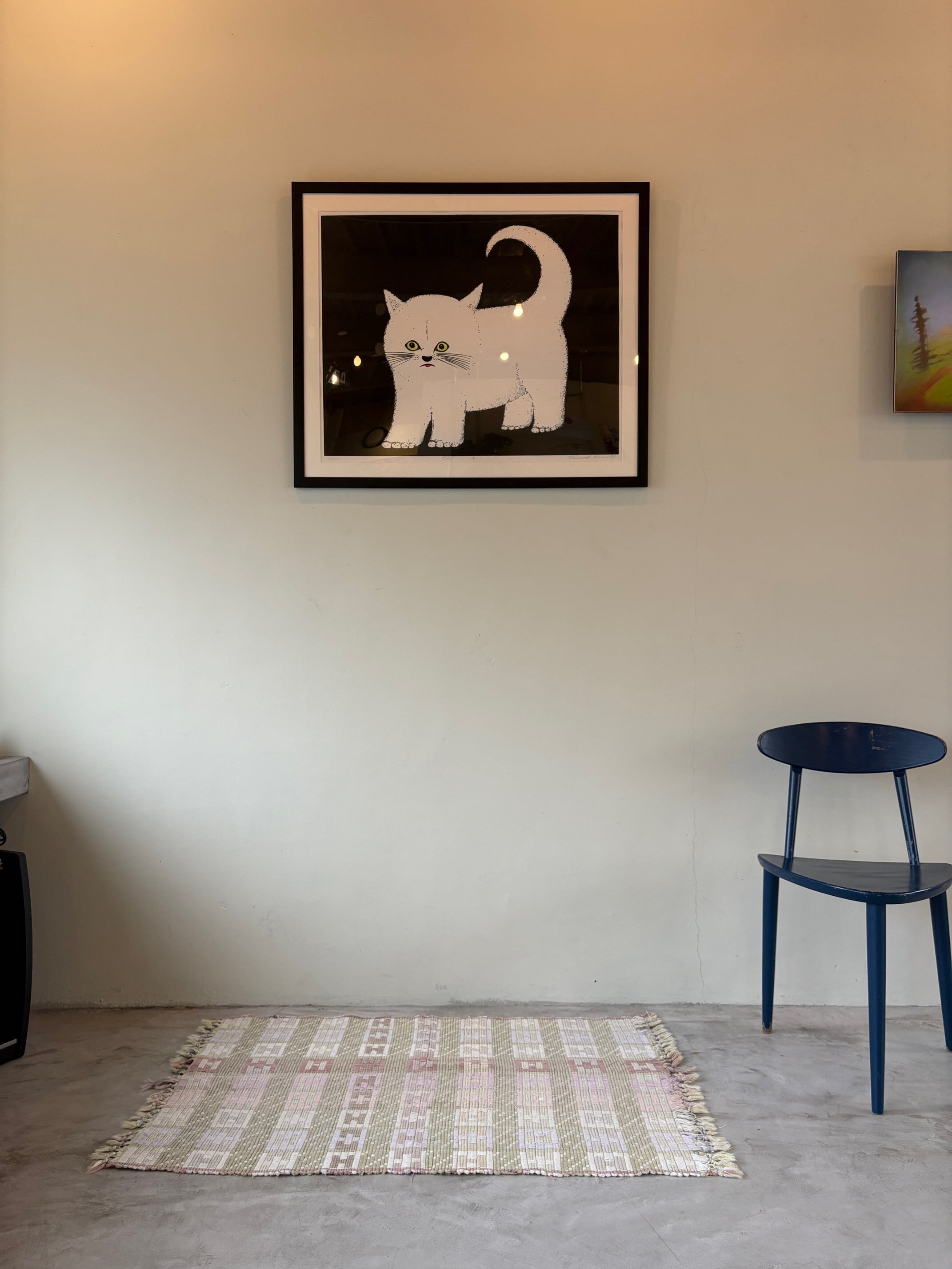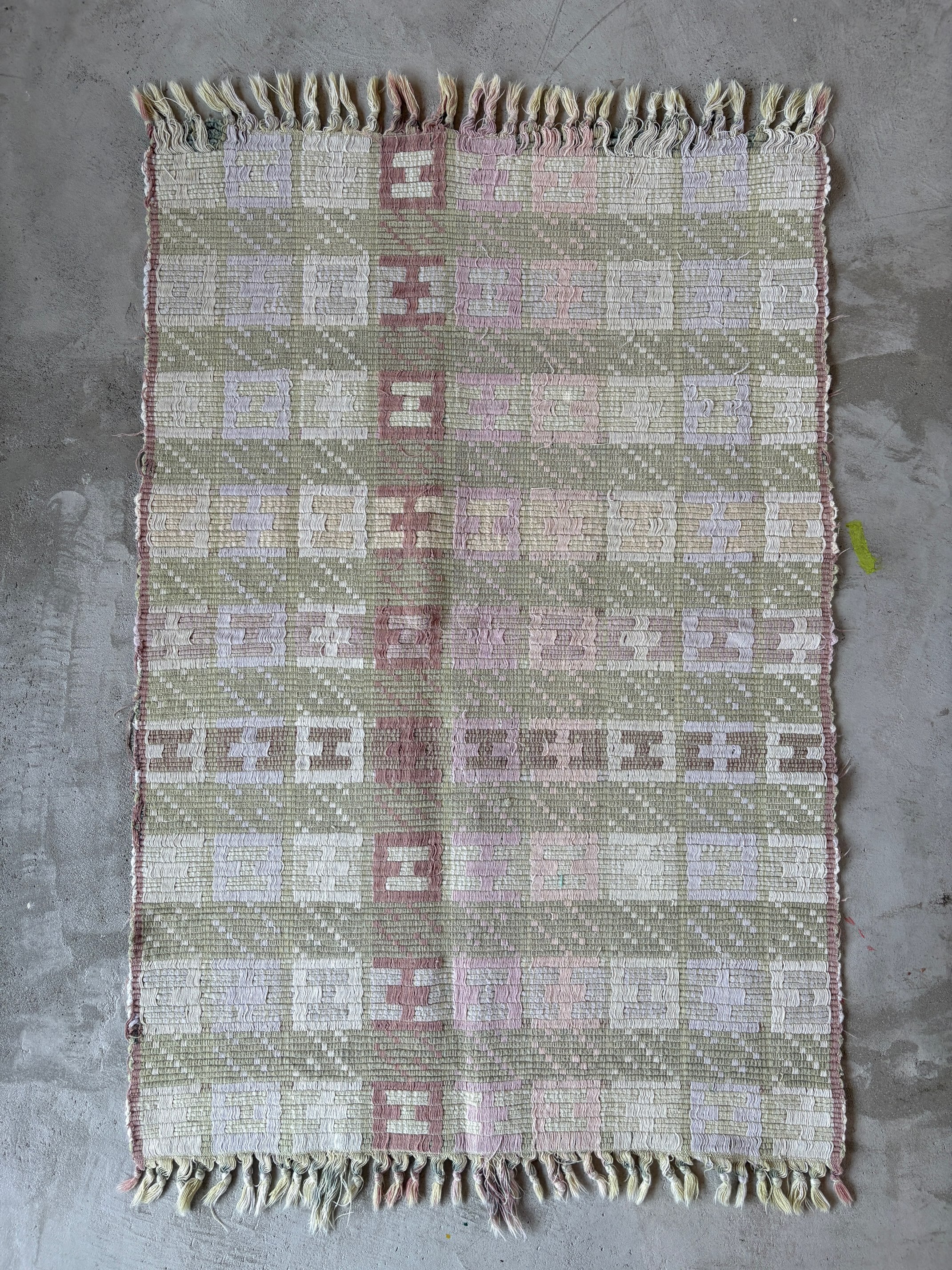 商品説明 :春らしい配色の手織りラグです。