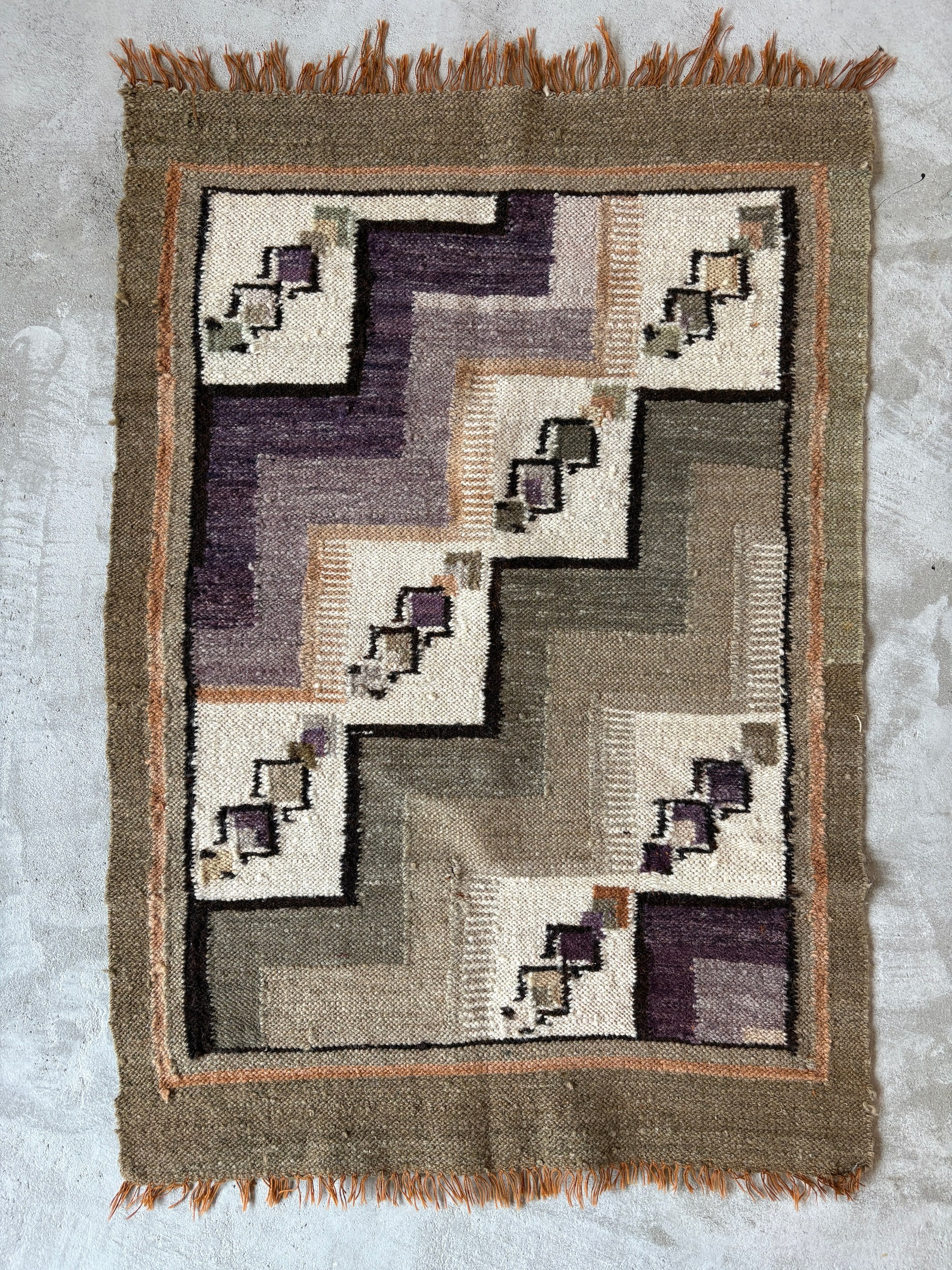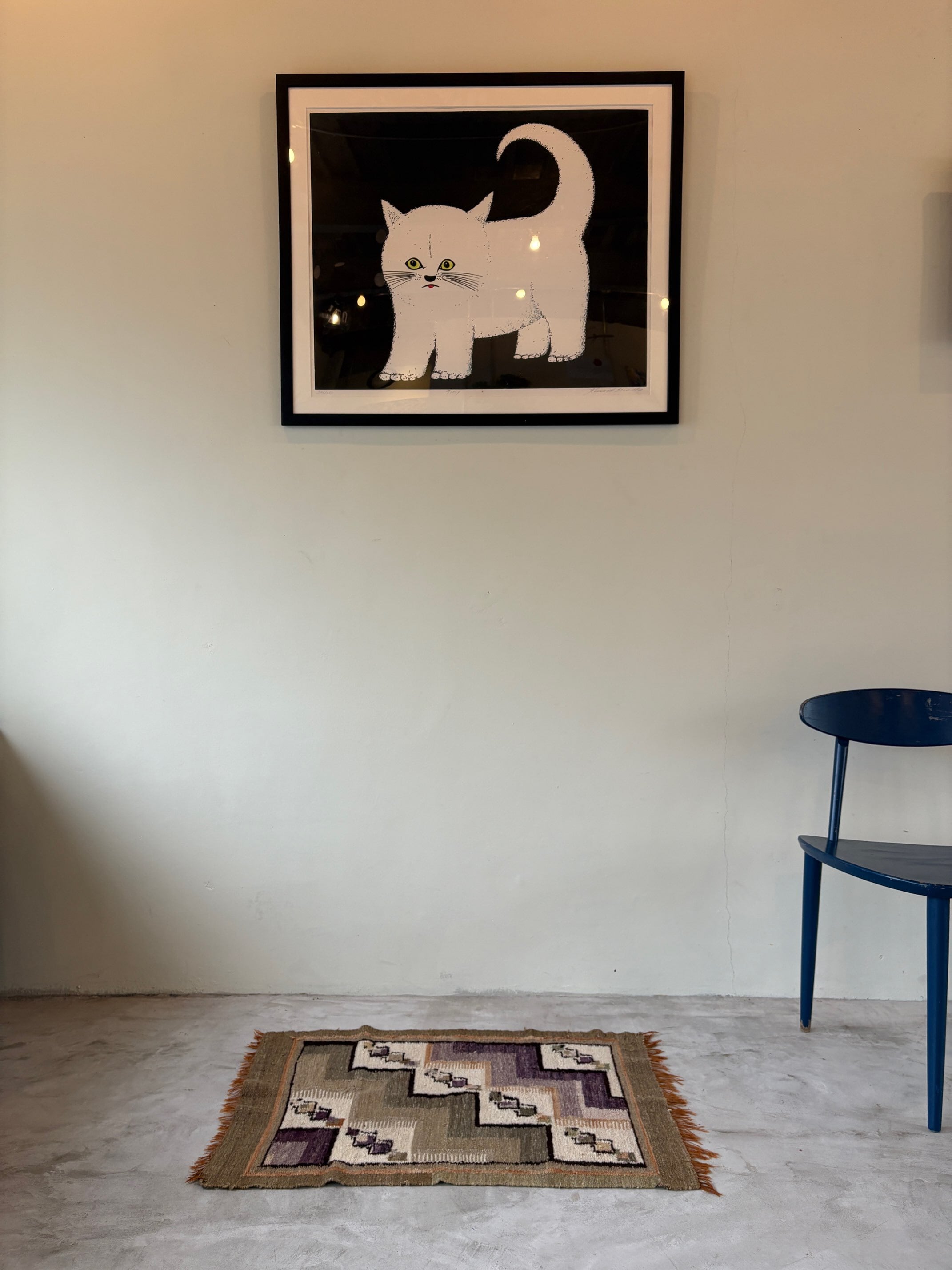 商品説明 :アメリカ ミッドセンチュリー 期の抽象的なデザインが魅力的な敷物です。