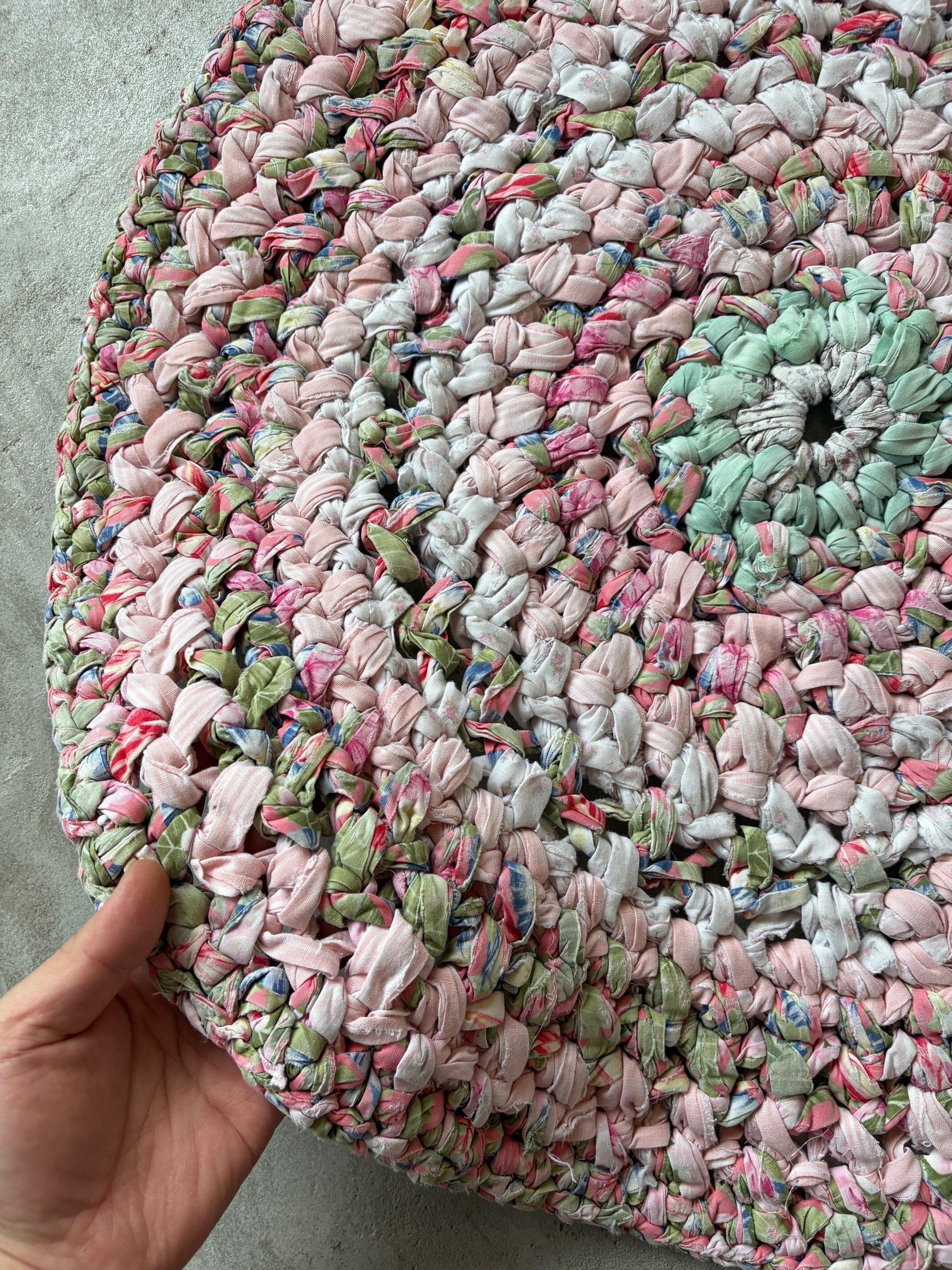 商品説明 :生地を丁寧な手編みで製作されたアーミッシュラグスタイルの敷物です。