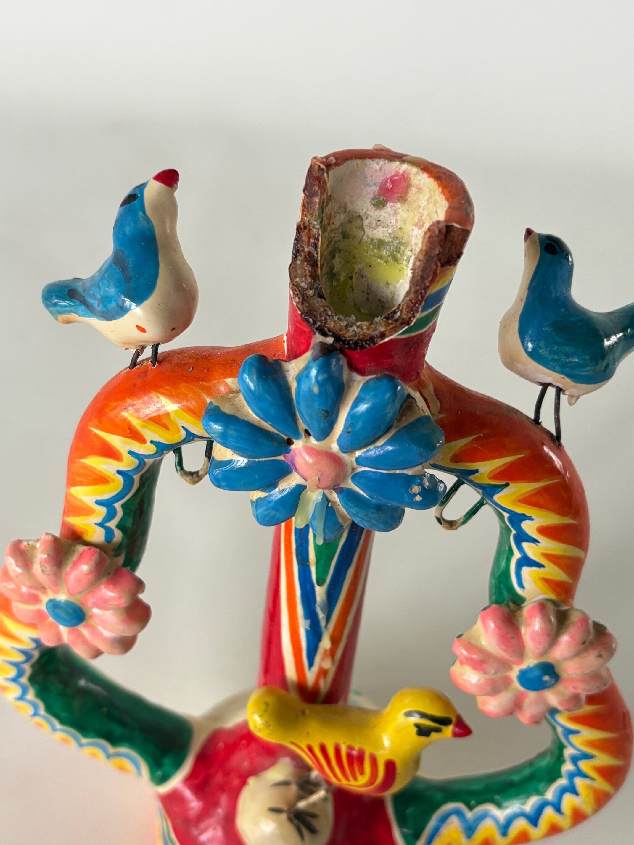 Mexican folk art vintage candle stand