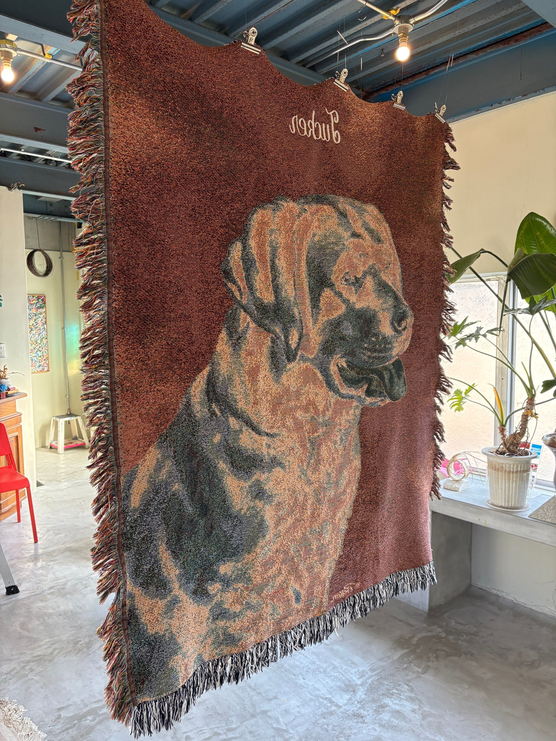 商品説明 : アメリカ オレゴン州、ポートランドにて買付け致した クールなワンちゃんのブランケットです。