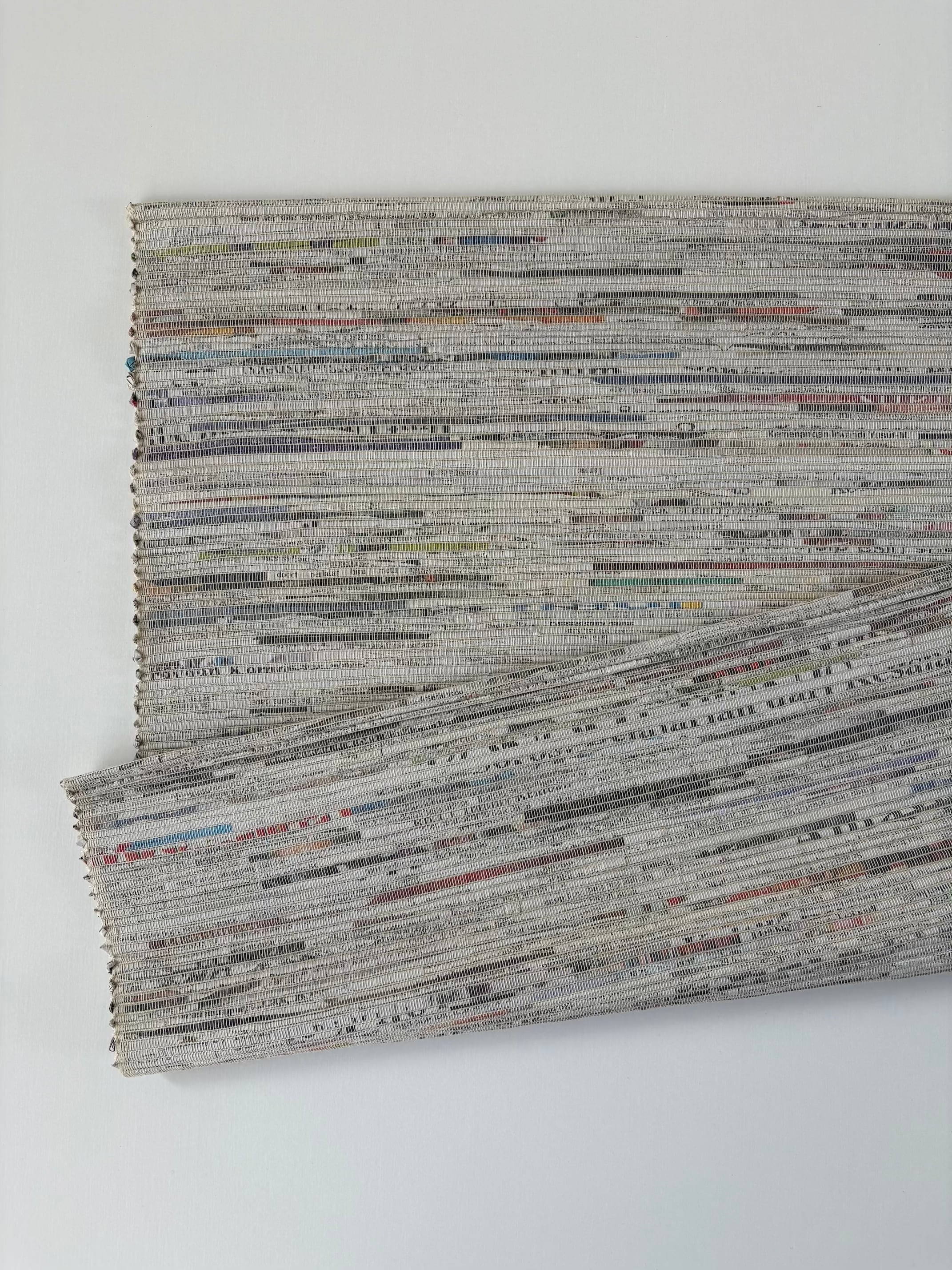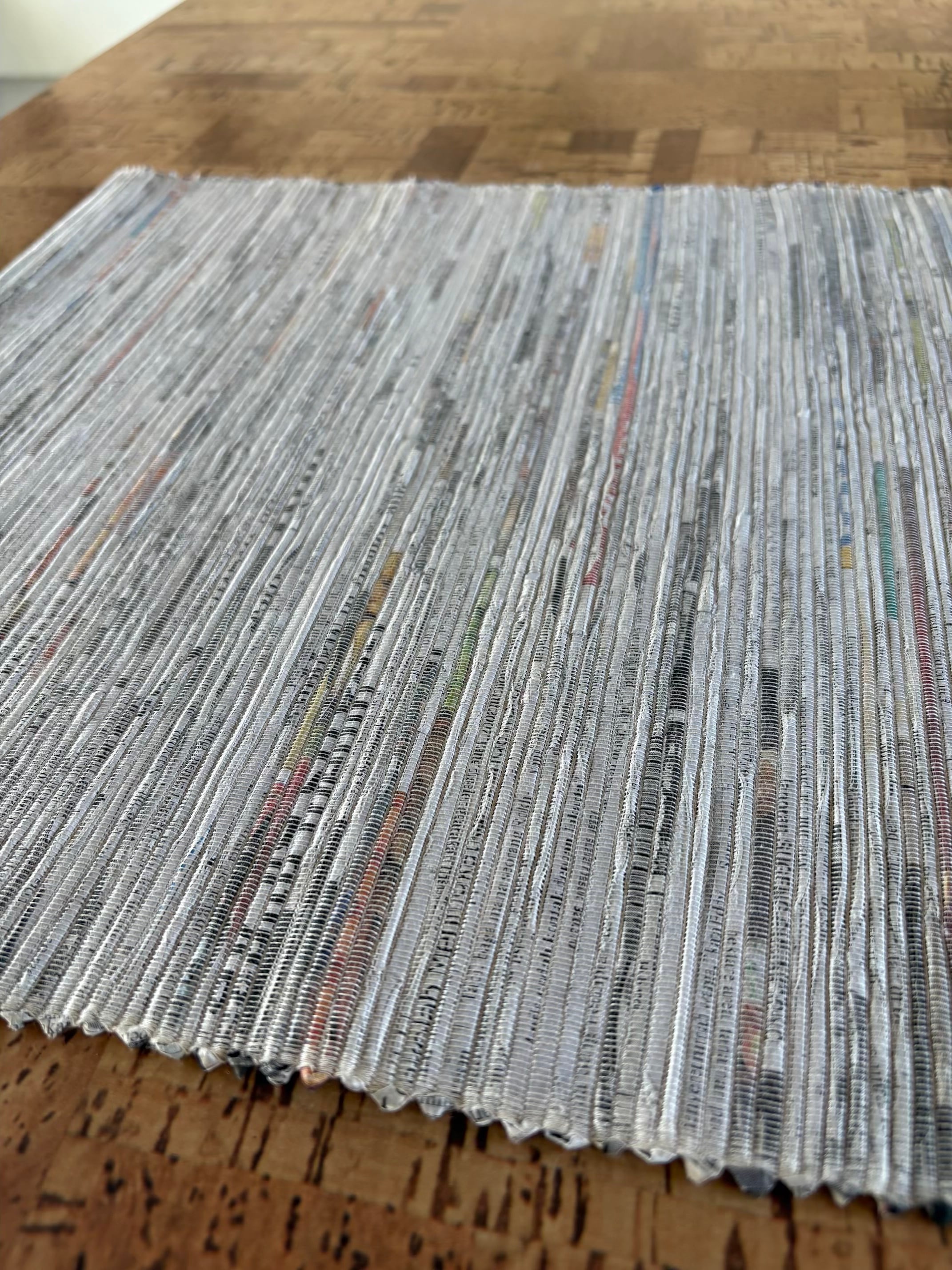 商品説明 : 英字新聞を細く丸めた物を丁寧に編み込んで製作された小さなマットです。