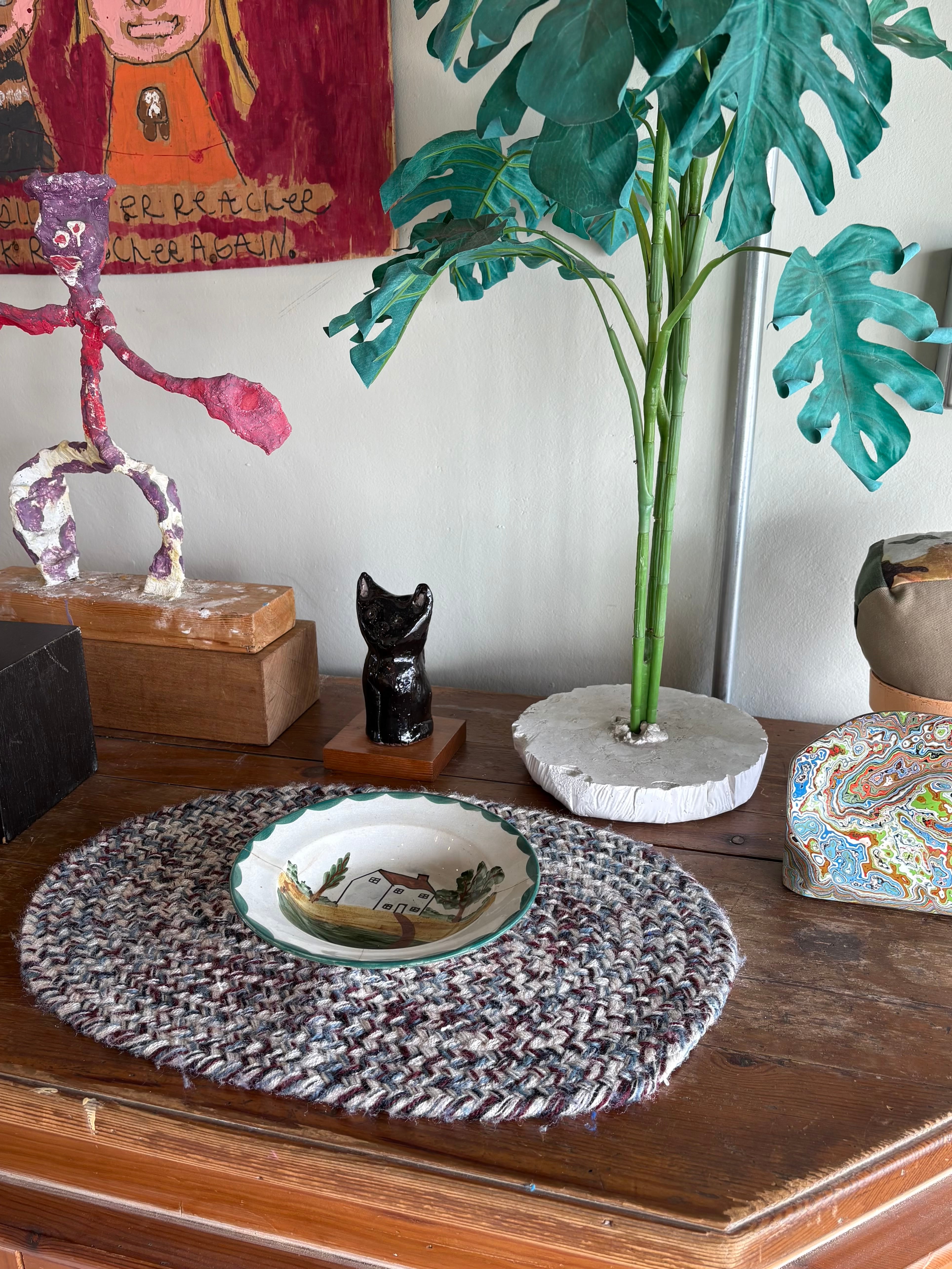 商品説明 : 1980年代ごろにアメリカで手編みで作られた 小さなアーミッシュスタイルのマットです。