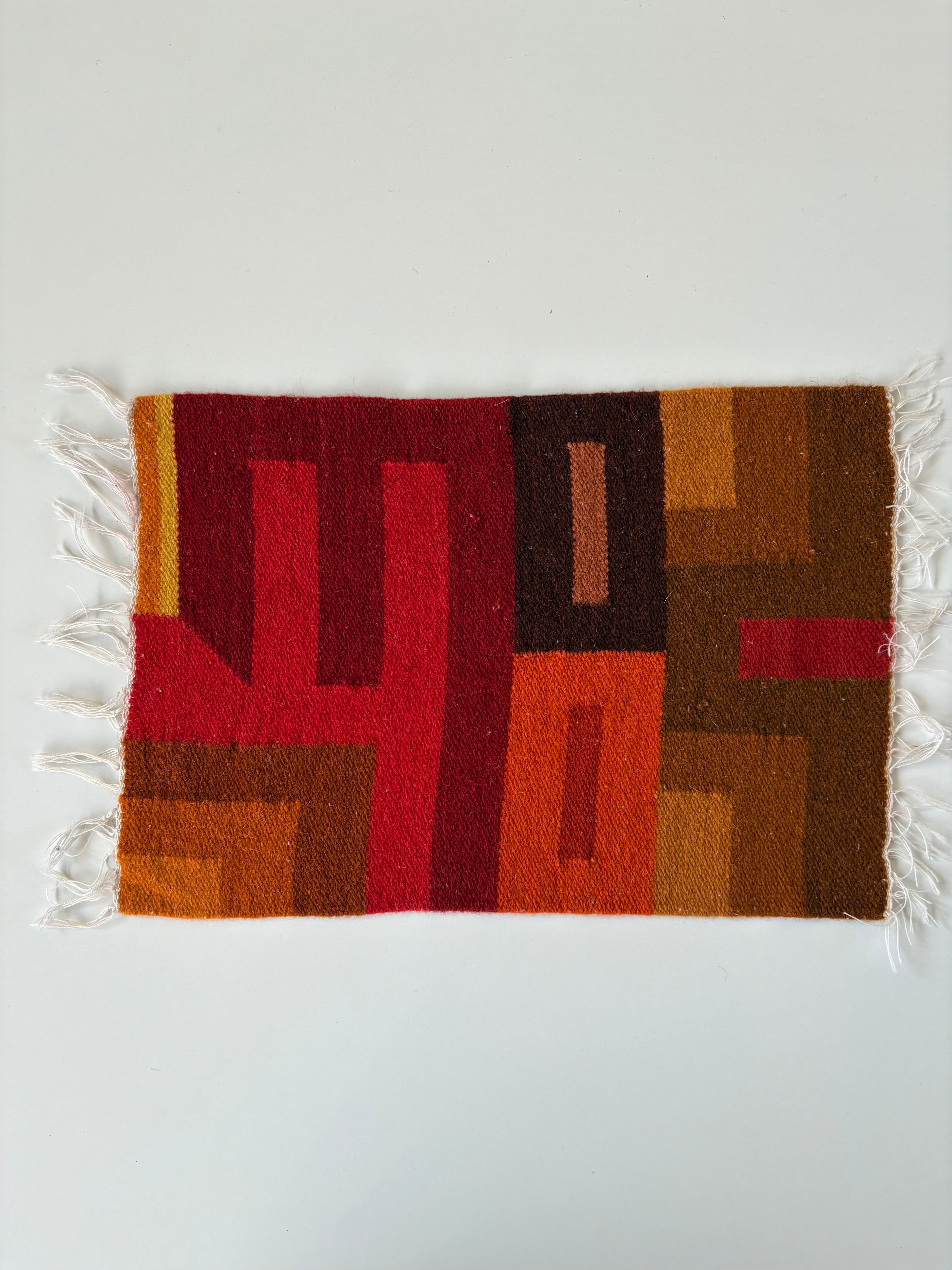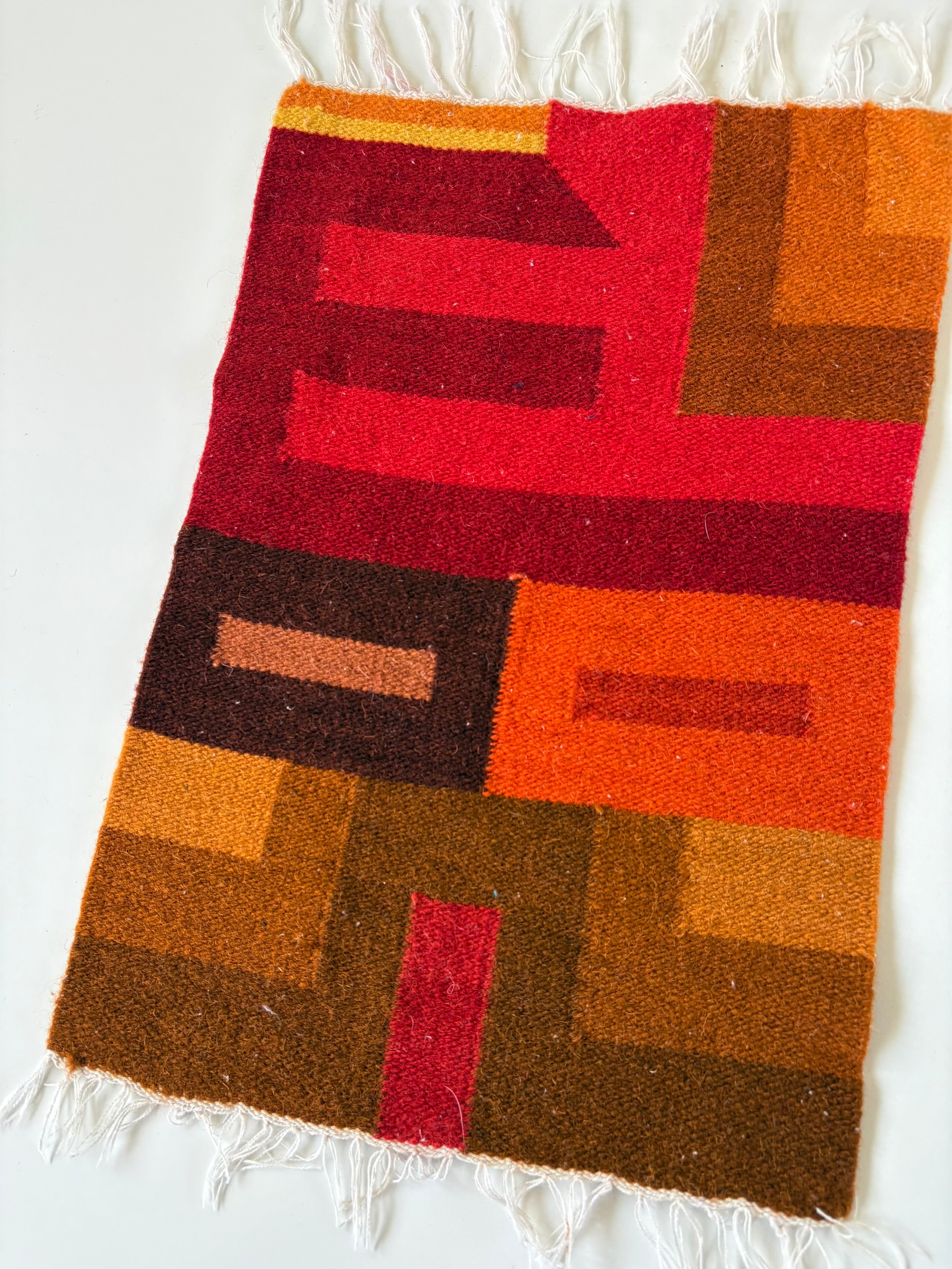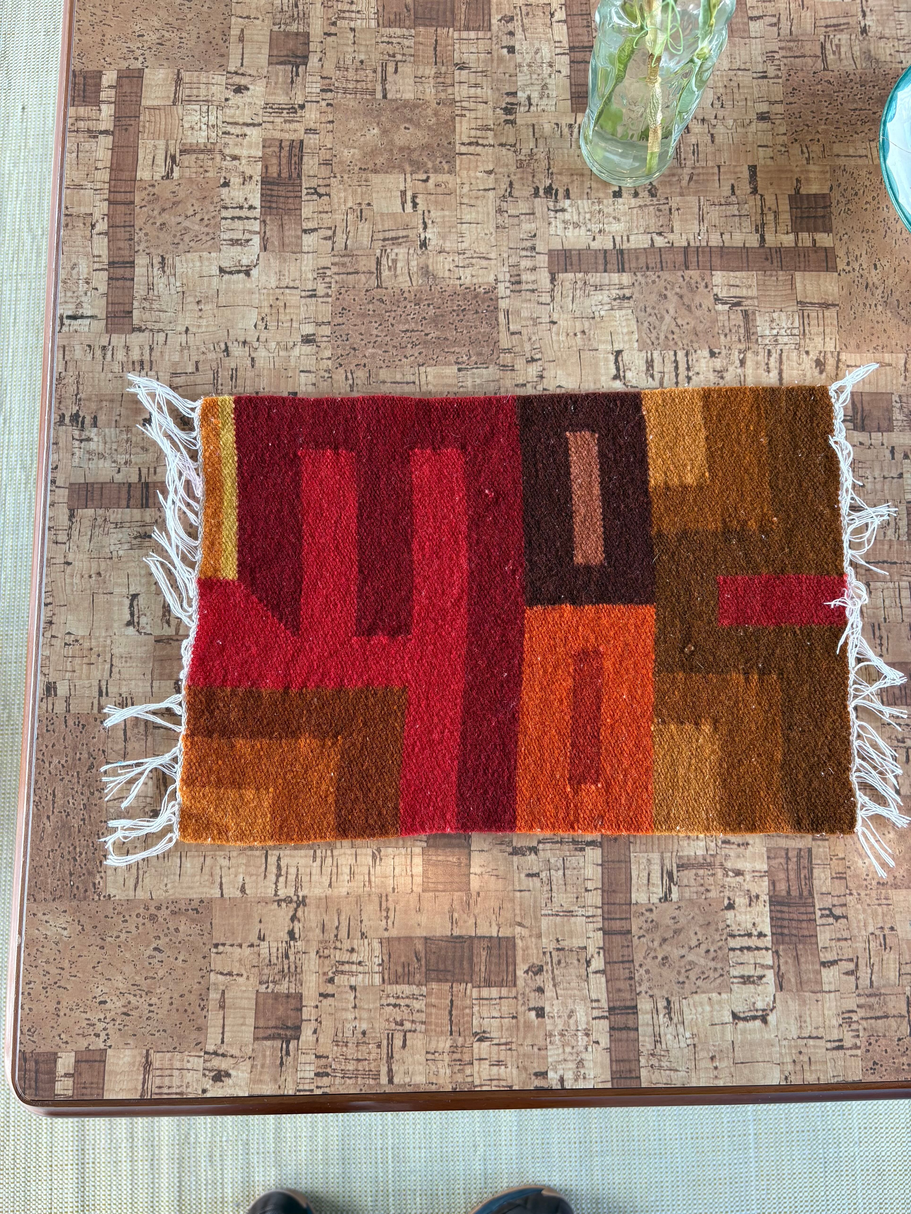 商品説明 : 1960年代 ミッドセンチュリー 期のアメリカで手織り製作された デザインの良い 小さなマットです。