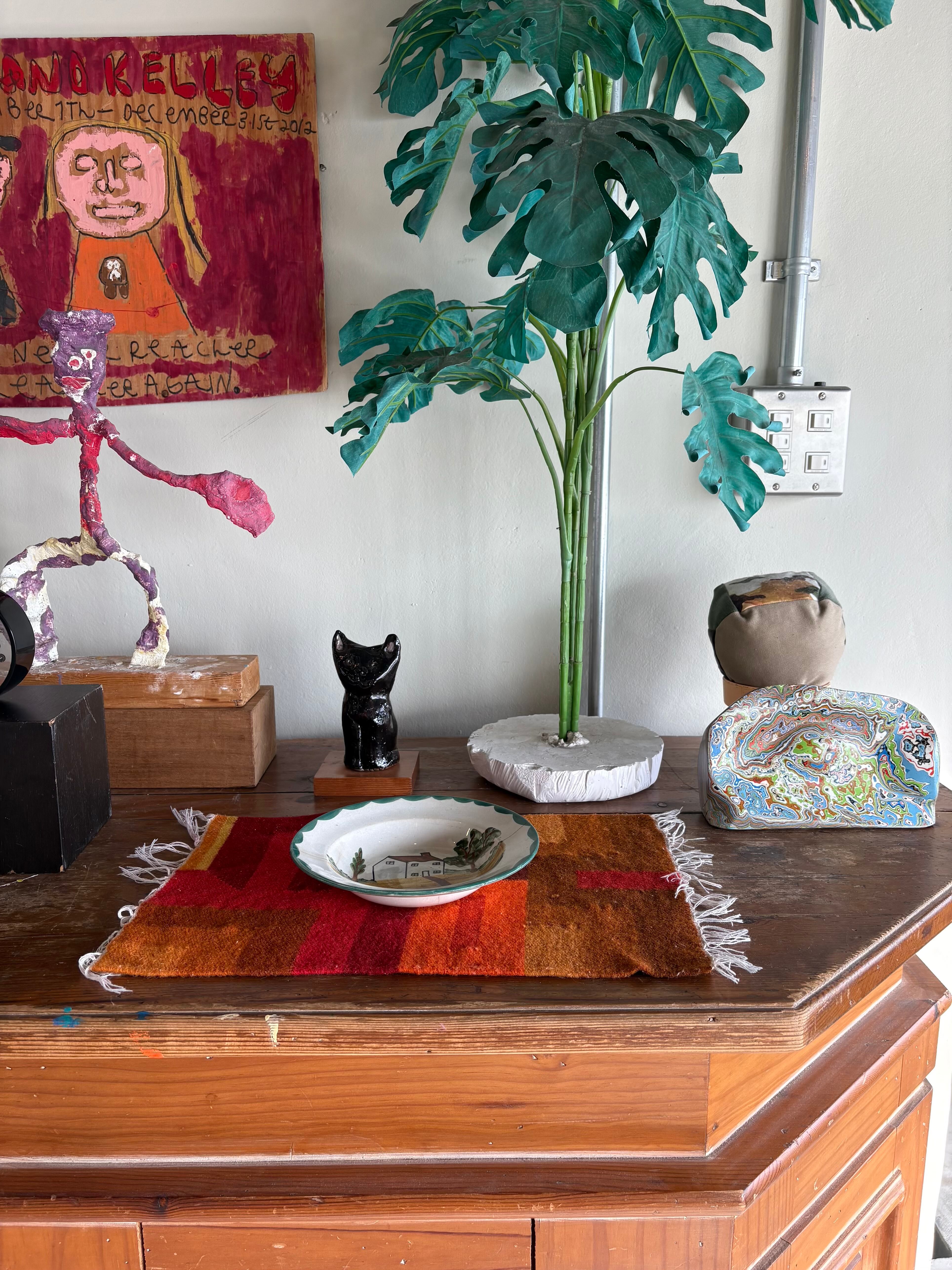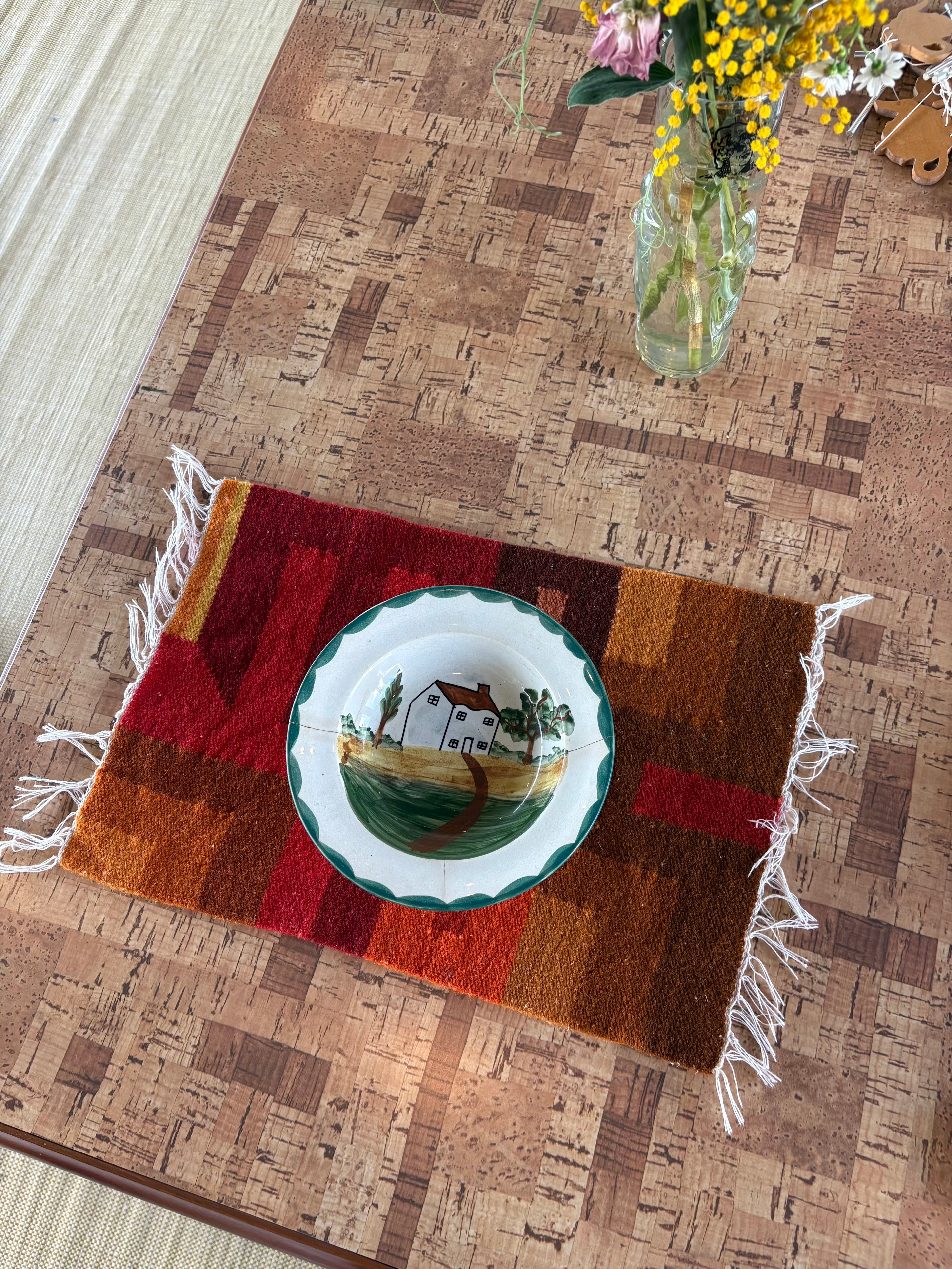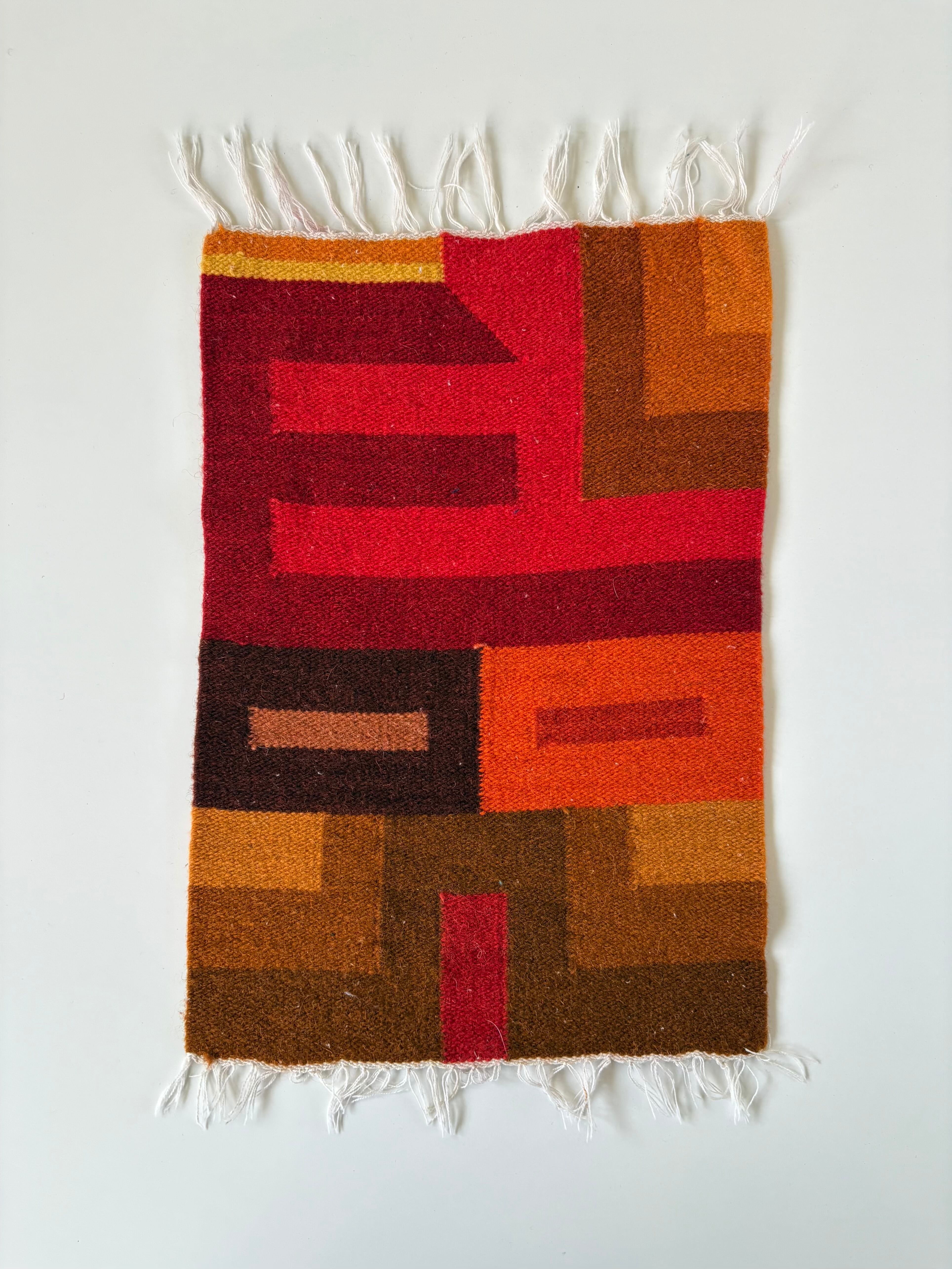 商品説明 : 1960年代 ミッドセンチュリー 期のアメリカで手織り製作された デザインの良い 小さなマットです。