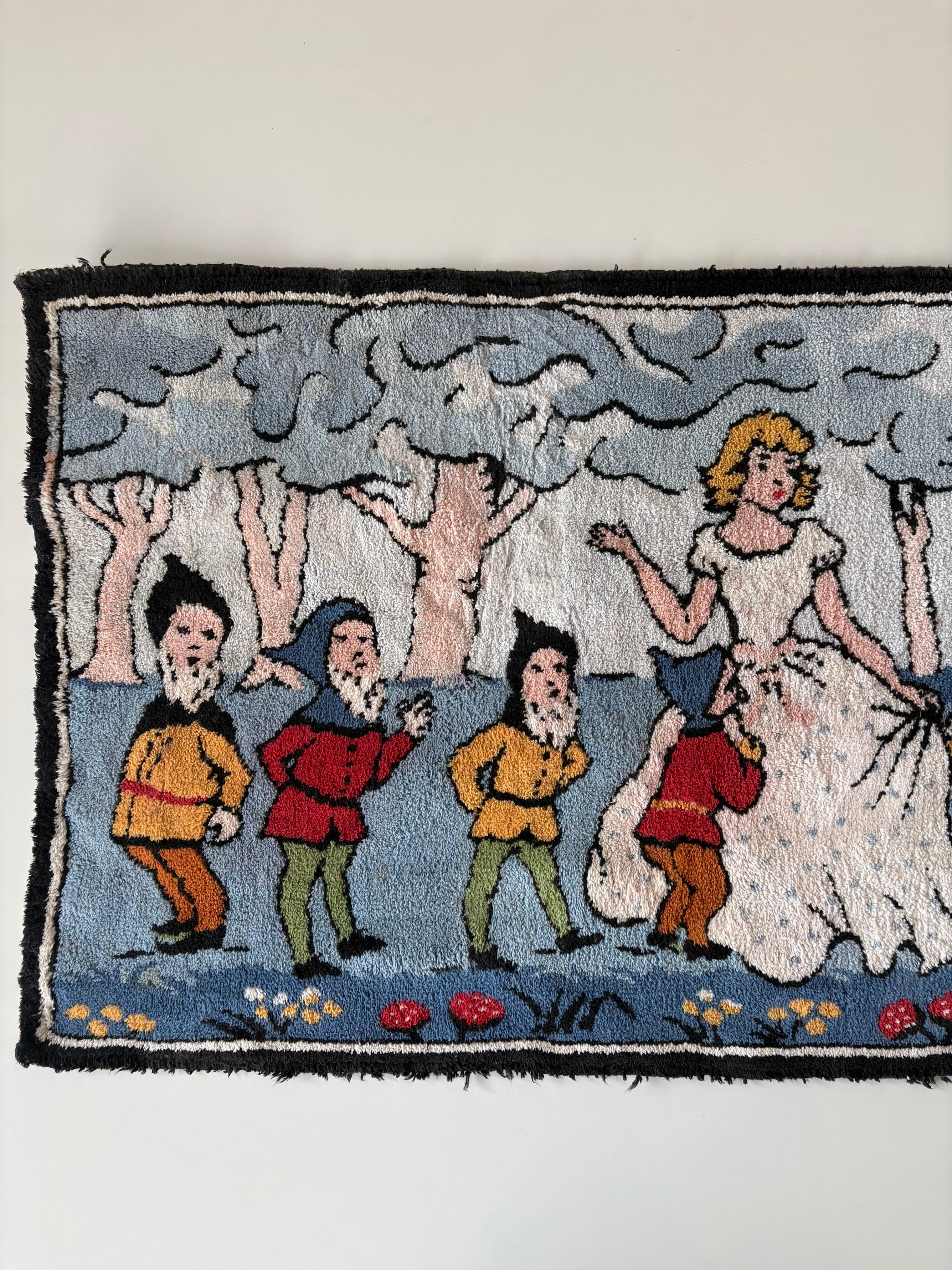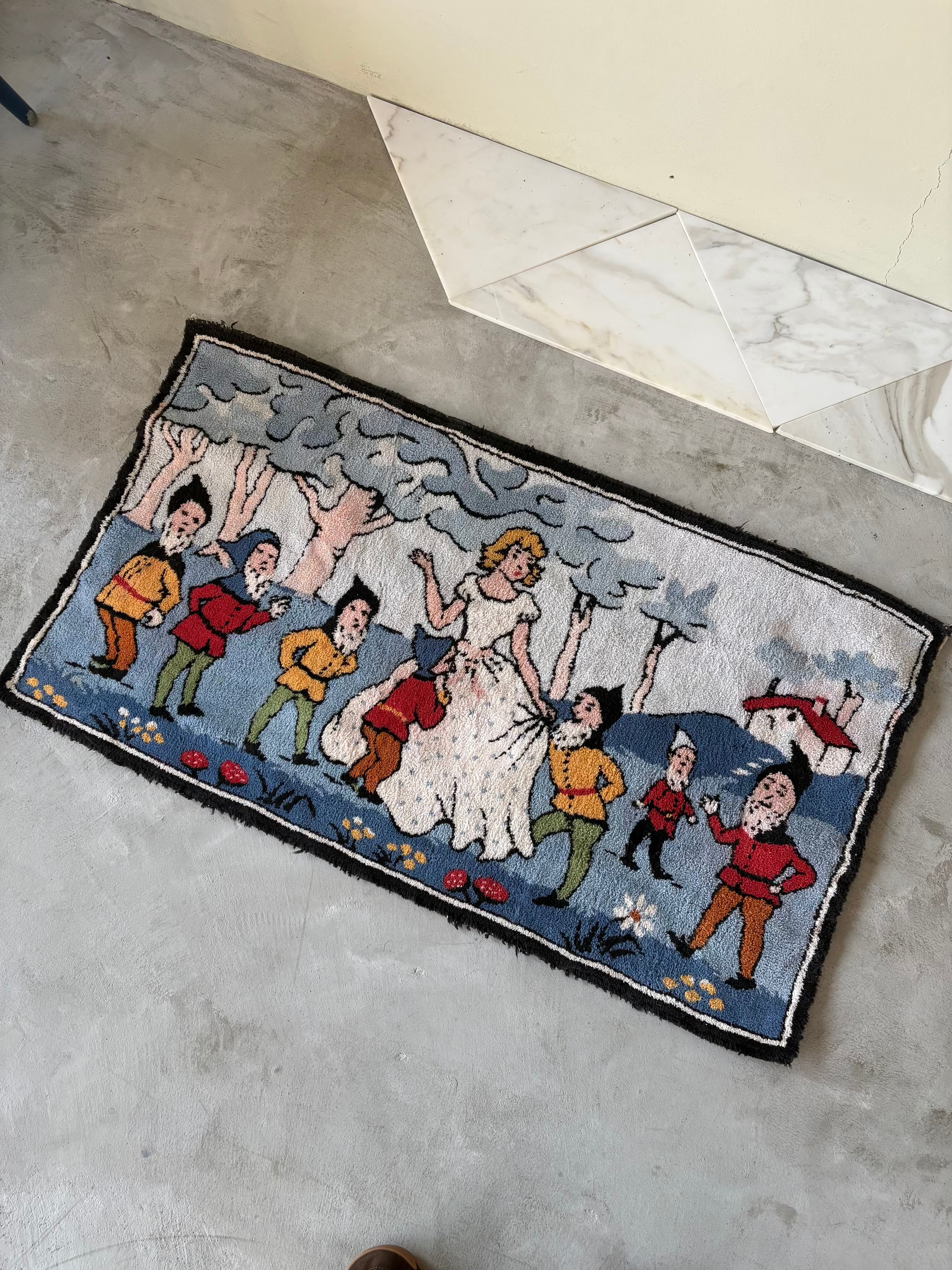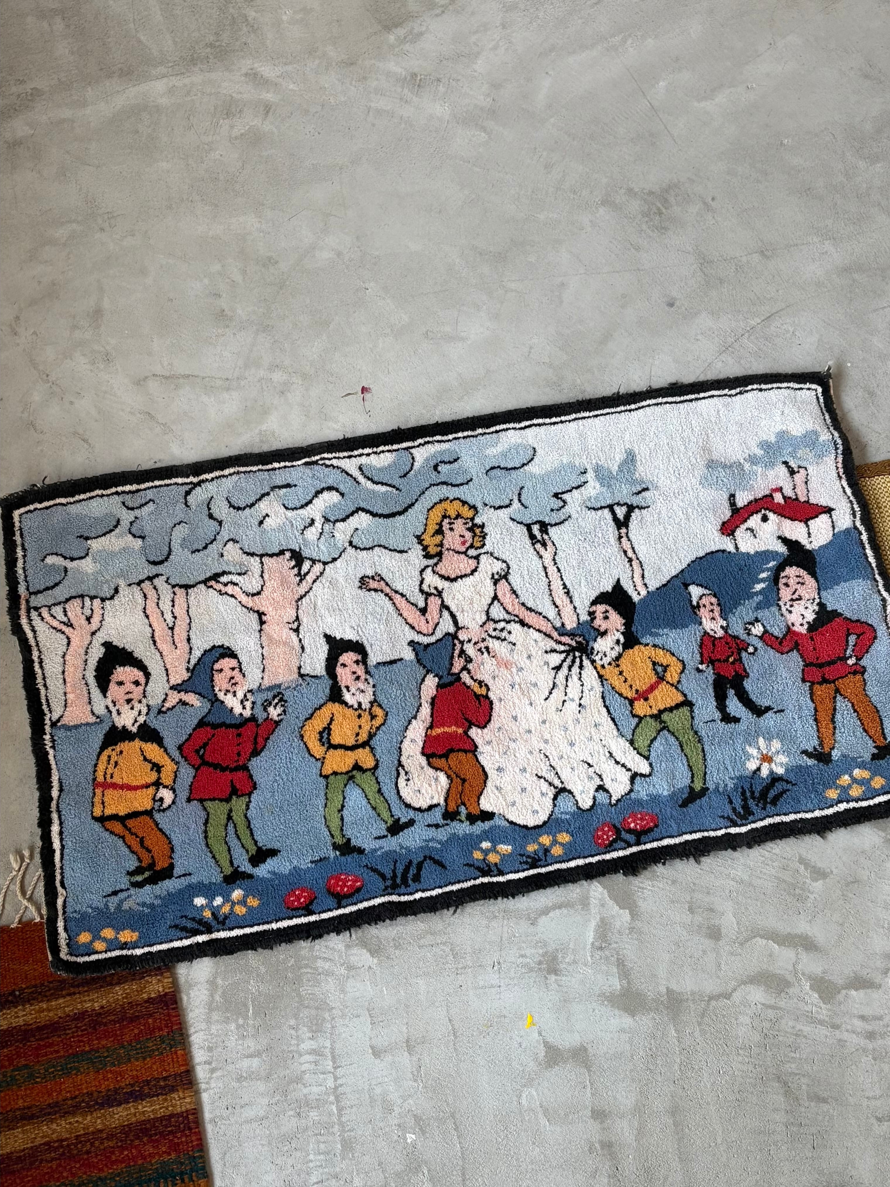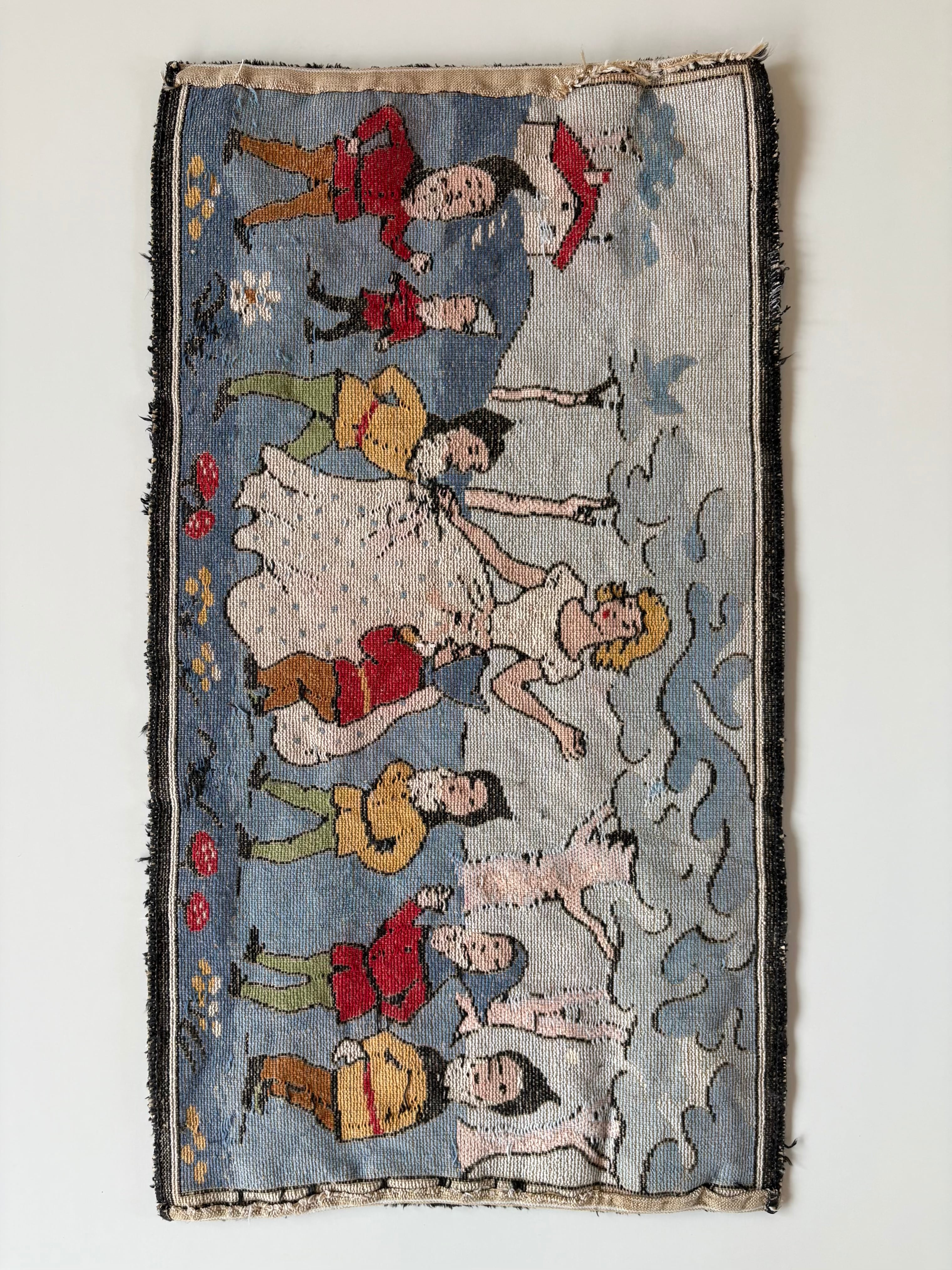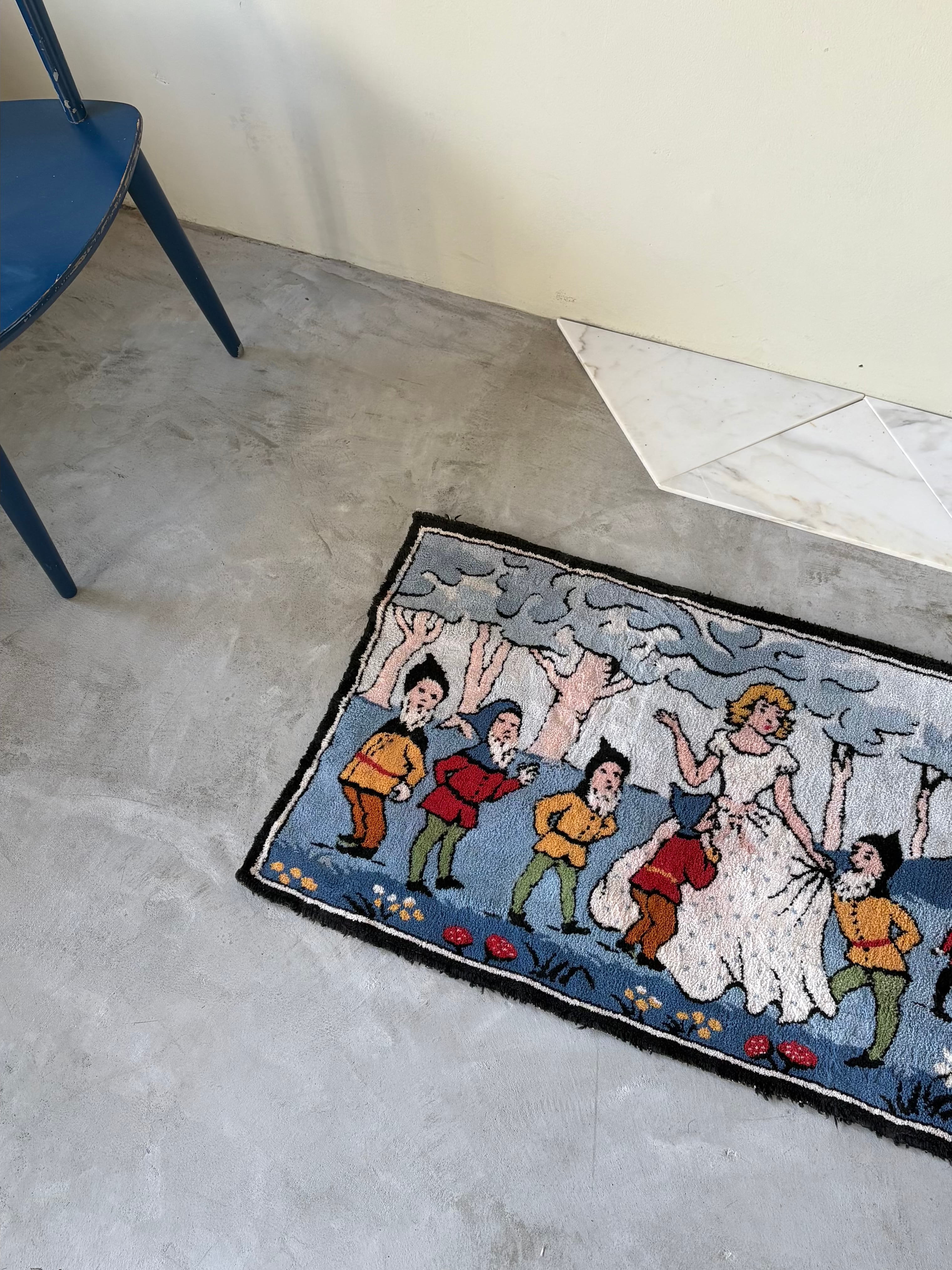 1920s "白雪姫と7人の小人" old hooked rug