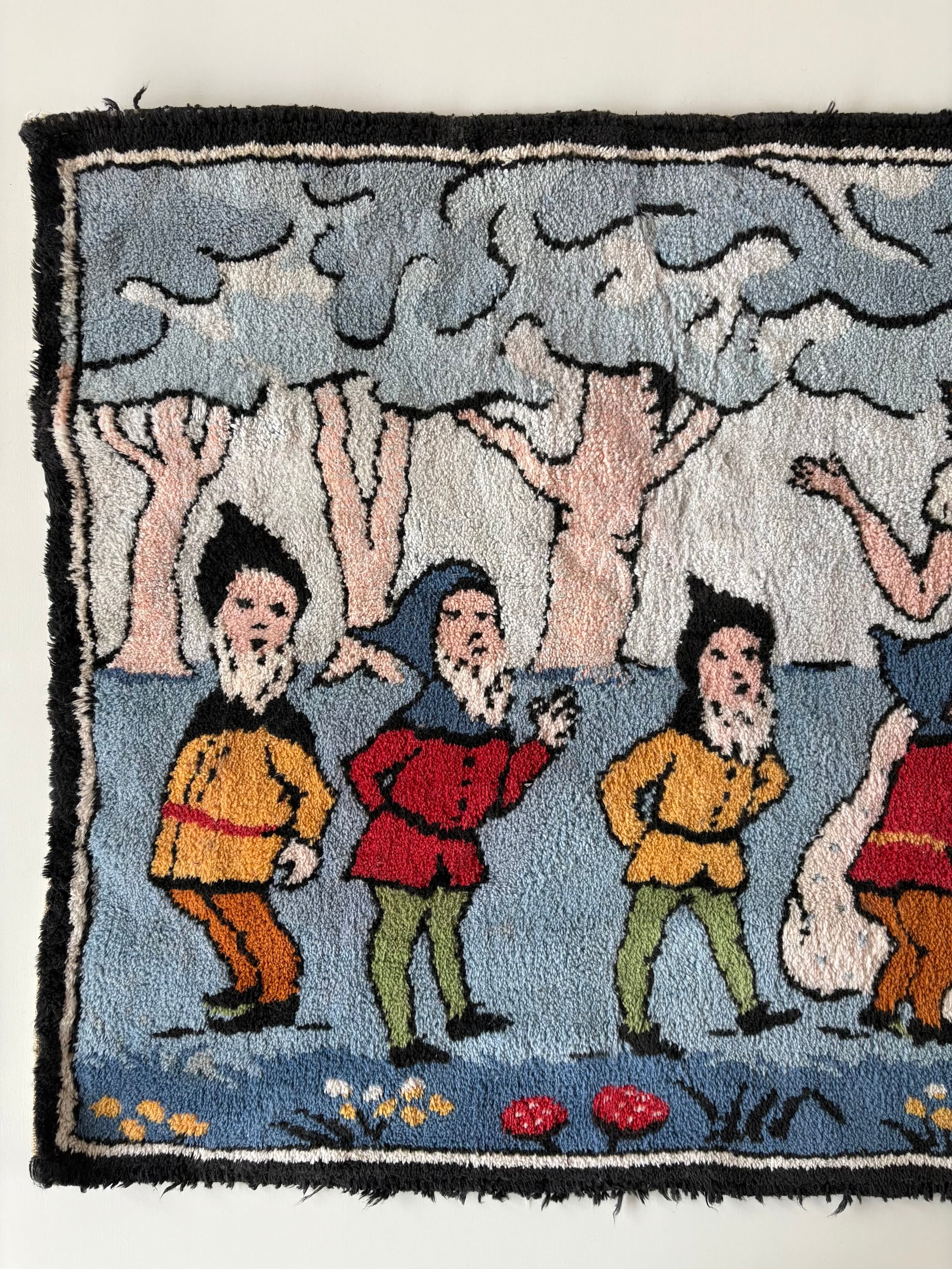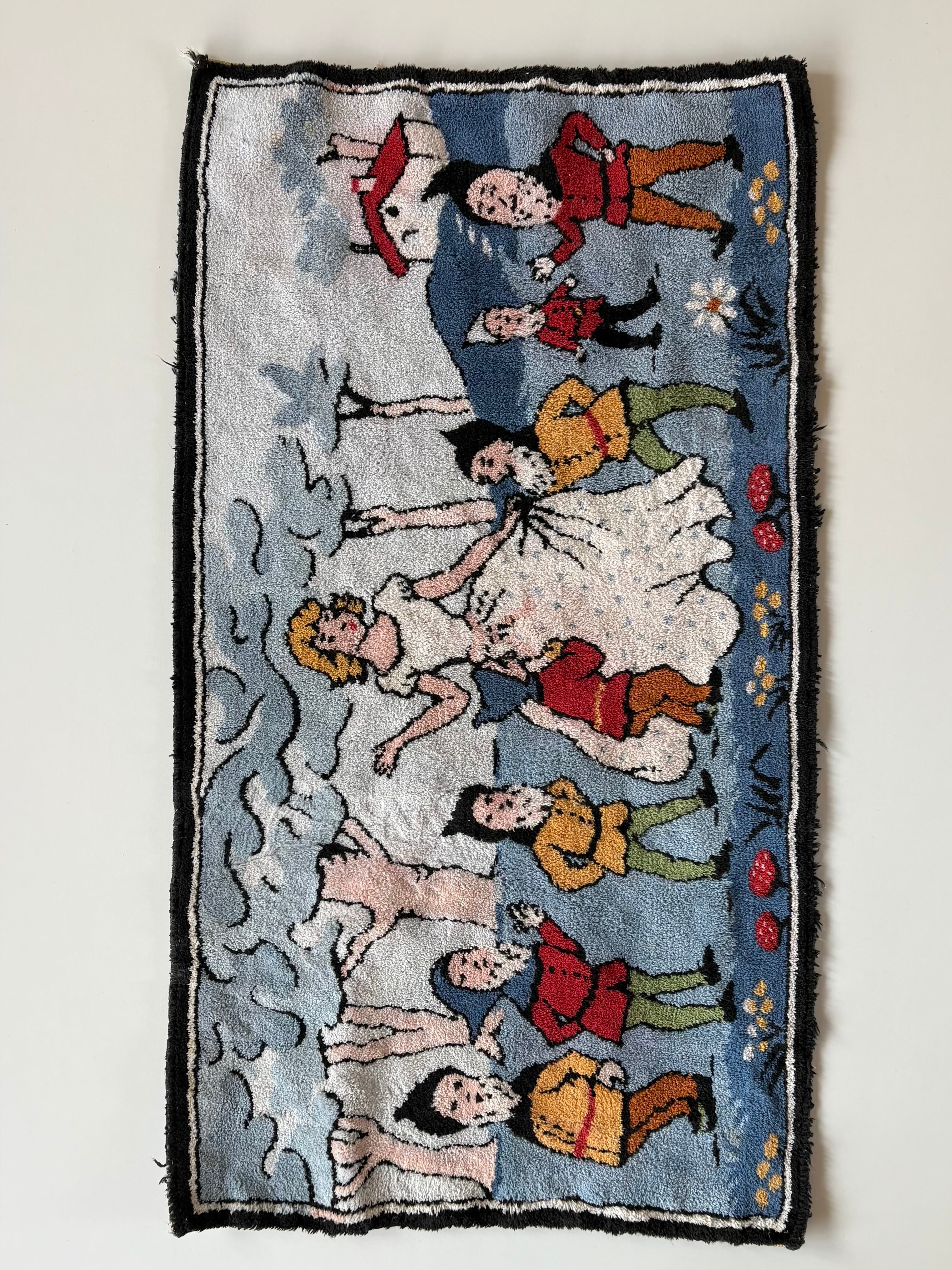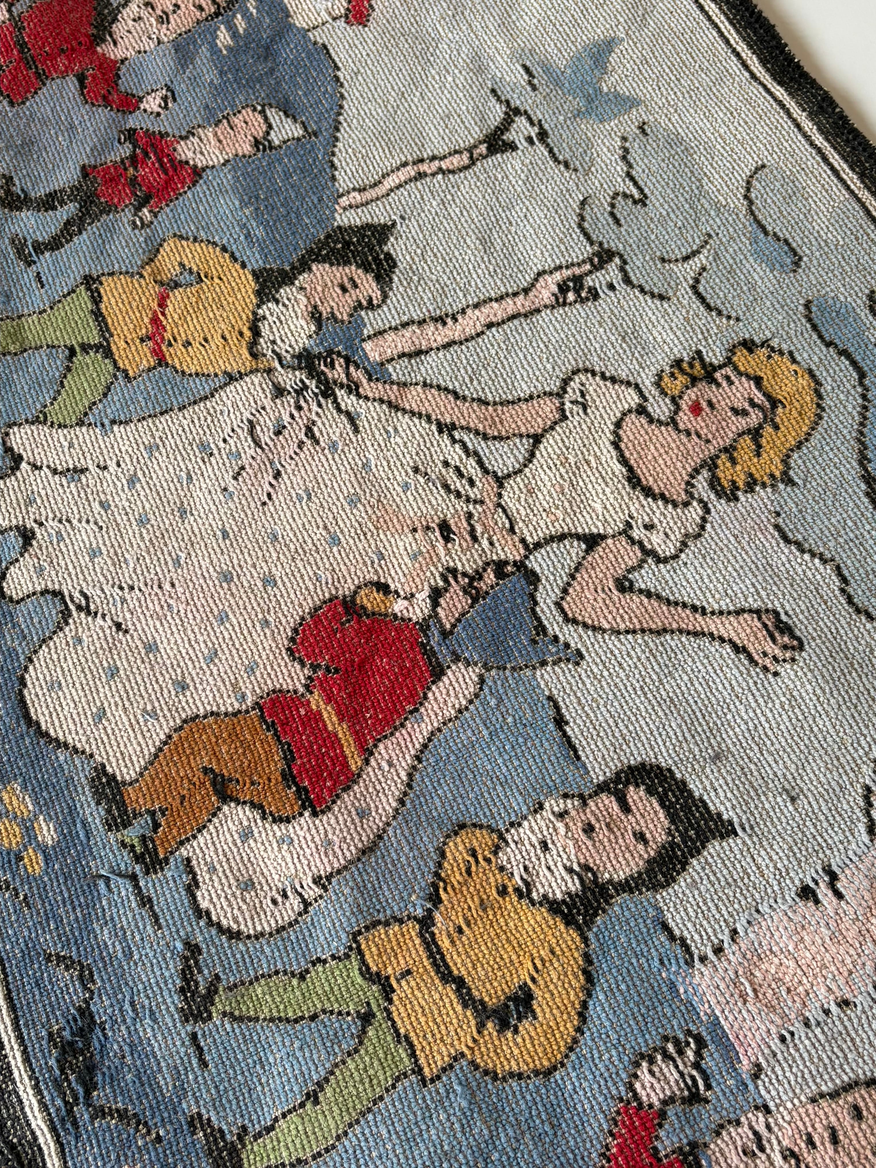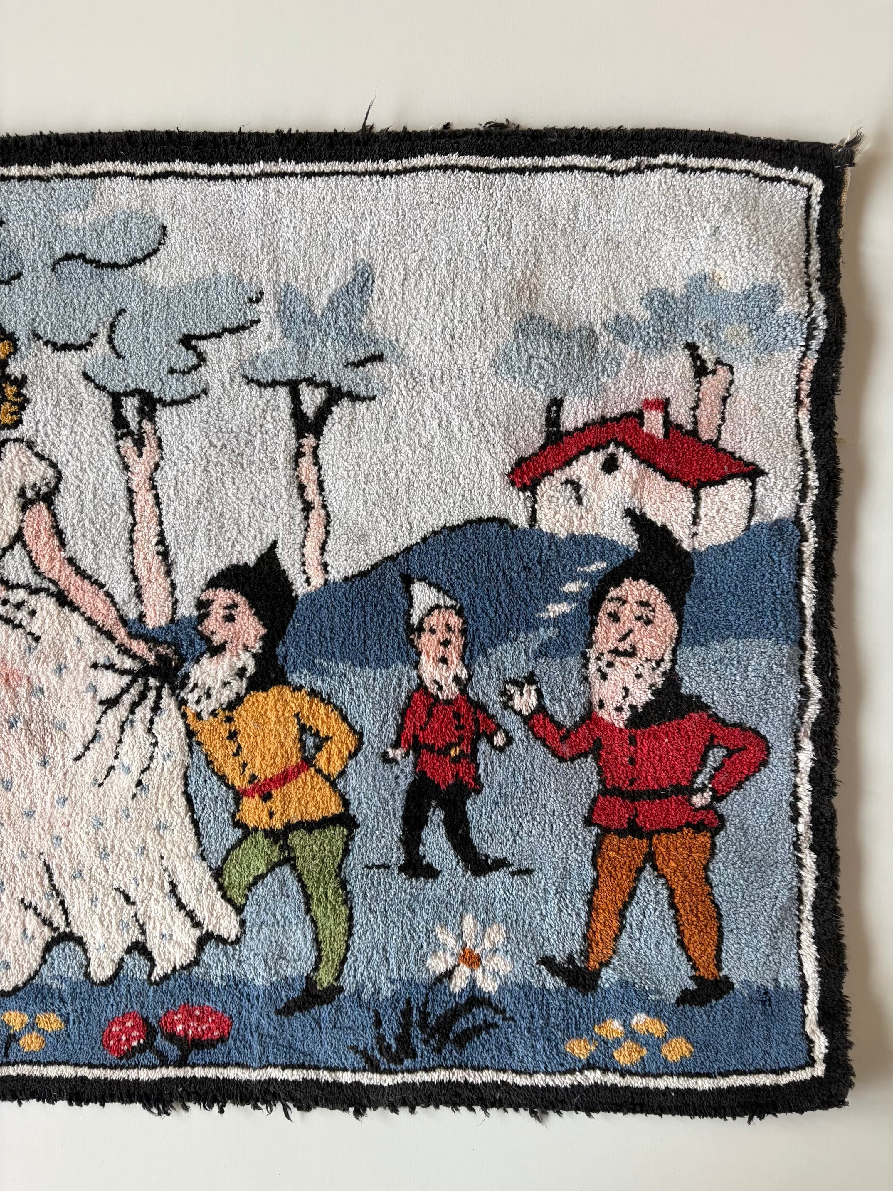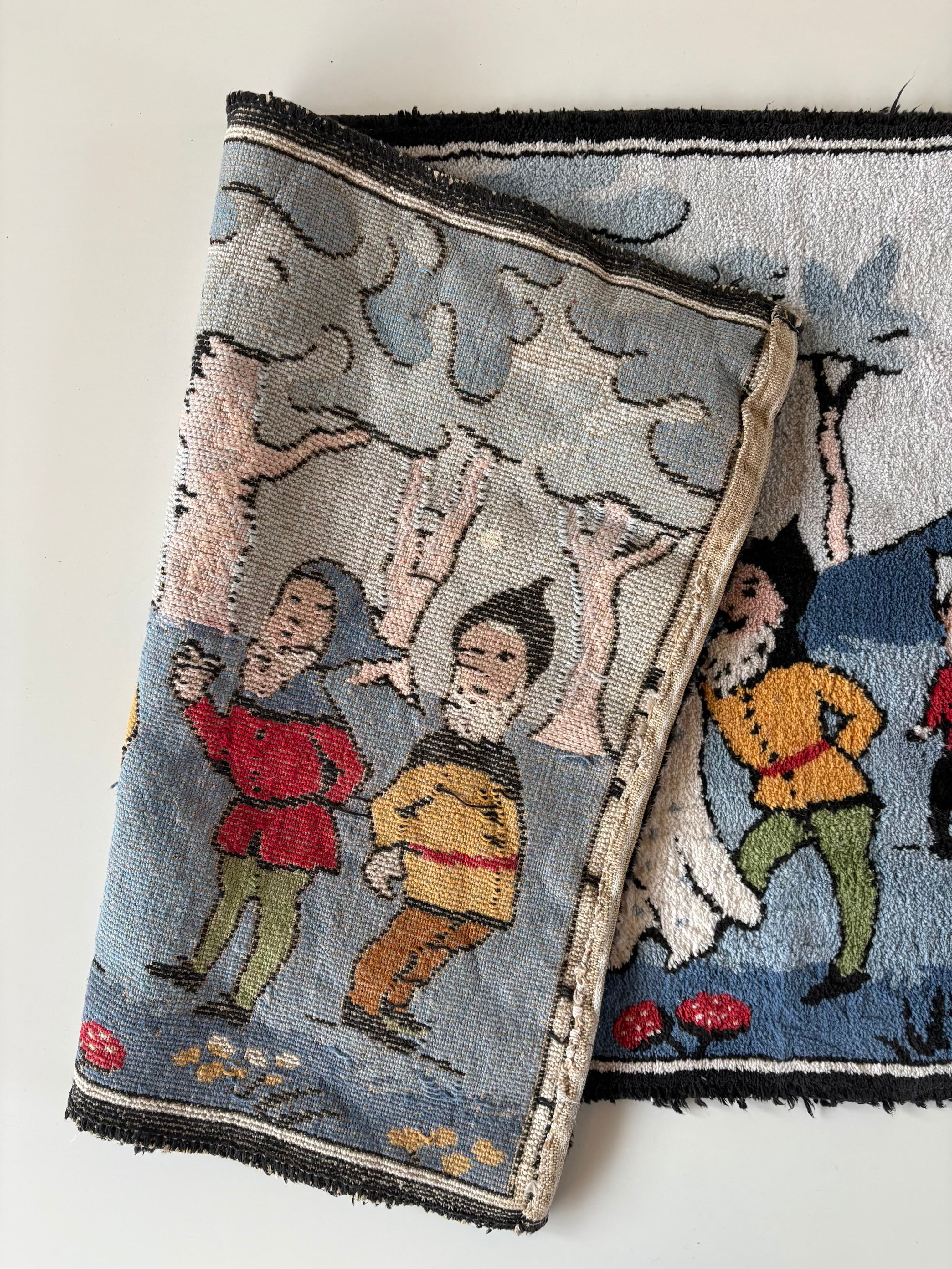 1920s "白雪姫と7人の小人" old hooked rug