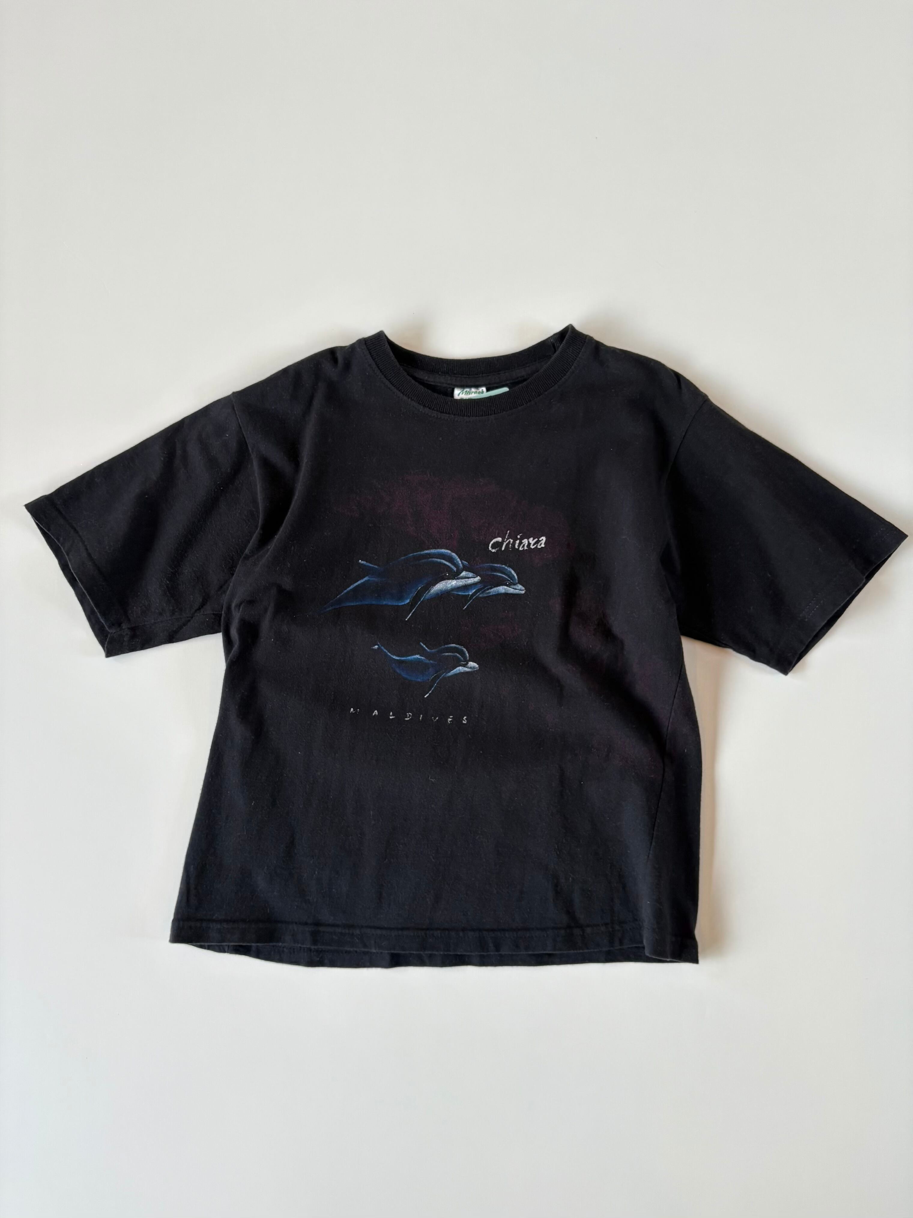 フロントのイルカのプリントが涼しげで ボディは柔らかく肌触りの良いヨーロッパメイド、夏にぴったりの一枚です。