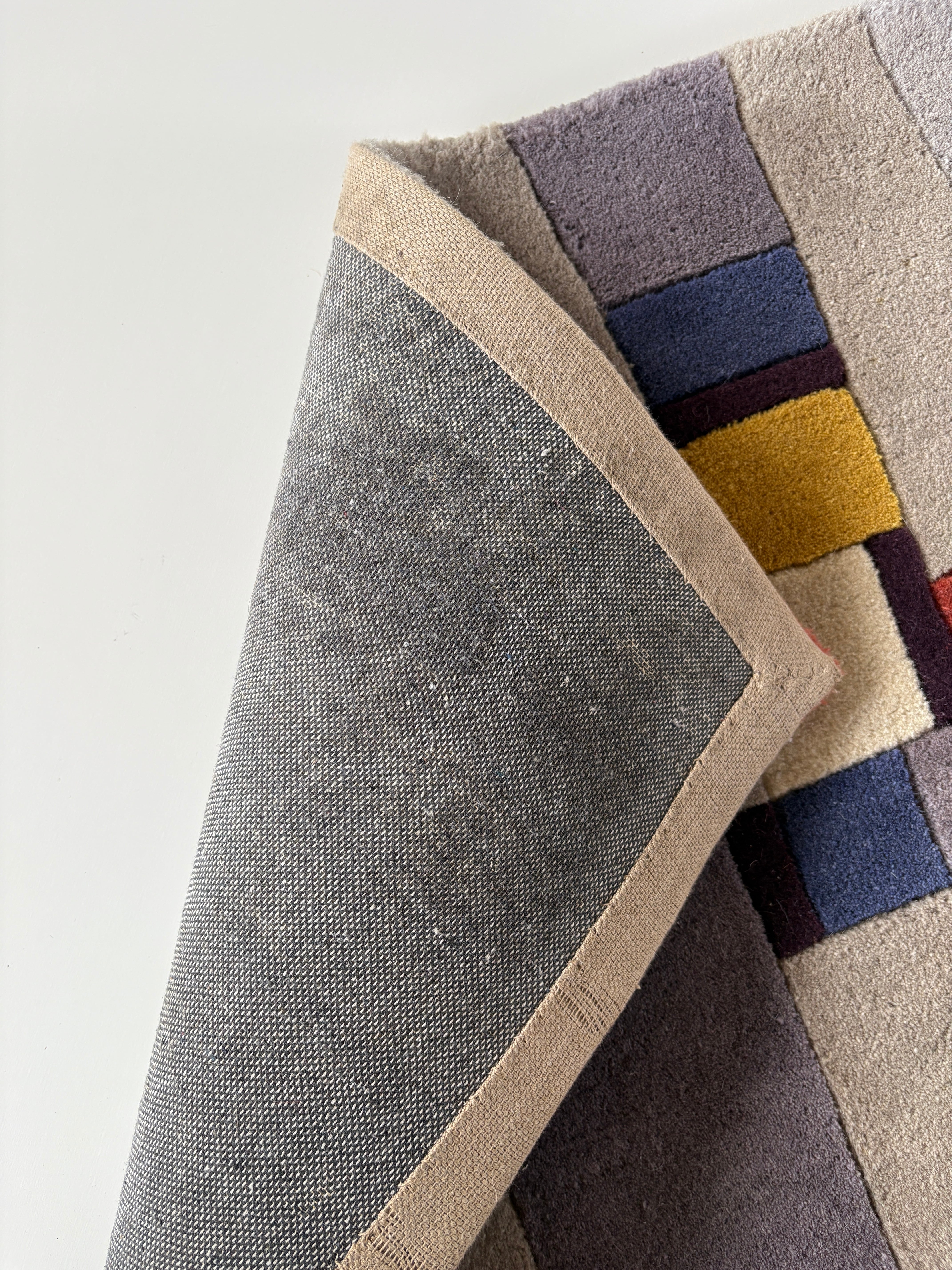 ズッシリと重厚で 敷物として安定感があり、毛足が短く柔らかい表面の質感は手触りも良い上品な一枚です。