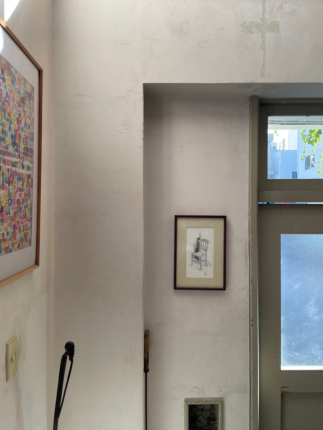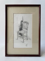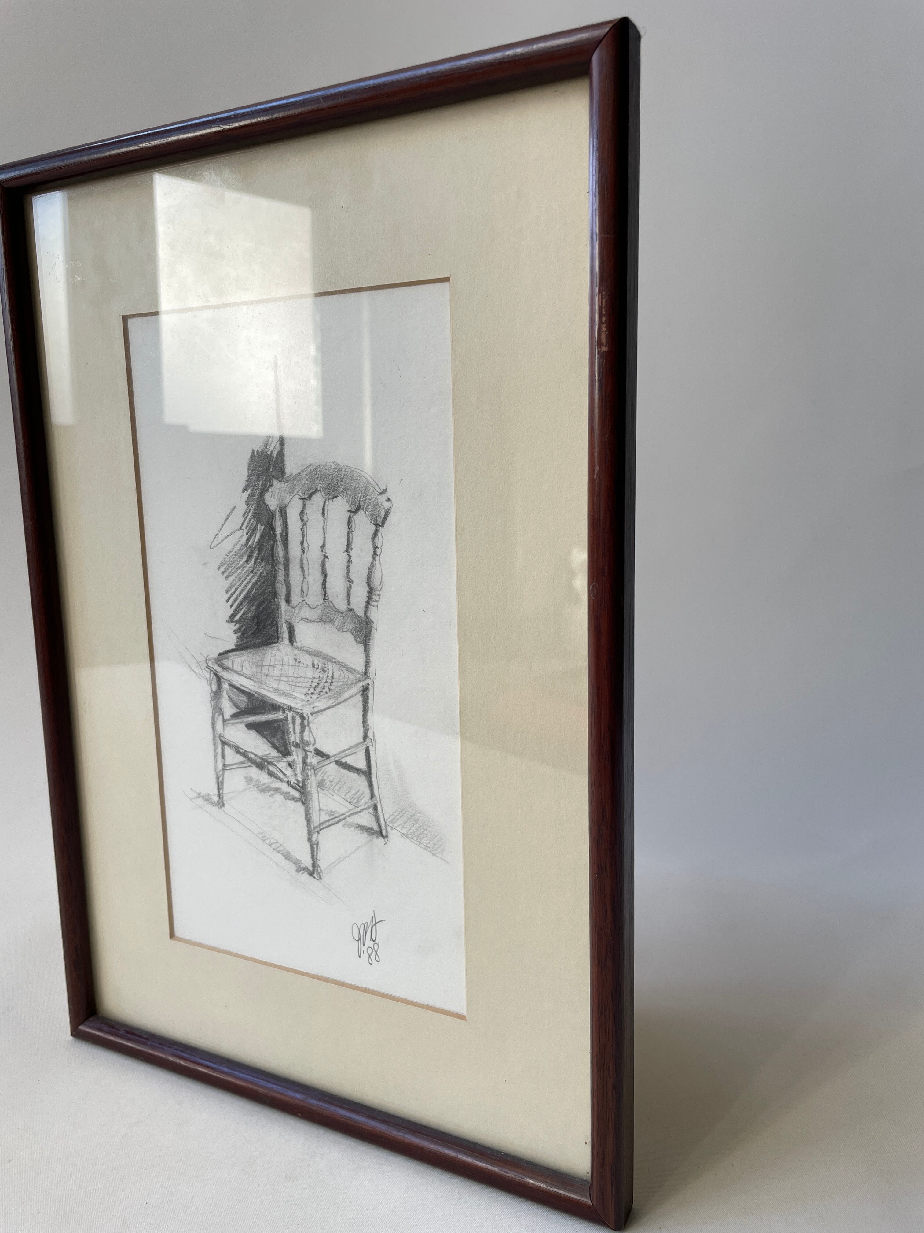 アメリカ オレゴン州、ポートランドにて昨年秋の買付けで出会った 椅子のデッサンが額装された壁掛け作品です。