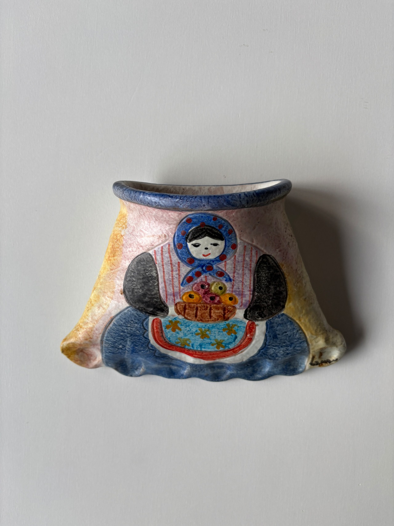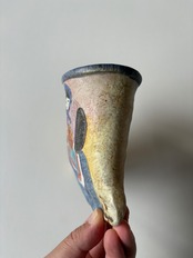 こちらの花器は デザイン、色彩 その他 物から醸し出される雰囲気に とても温かい魅力を感じ 買付け致しました。