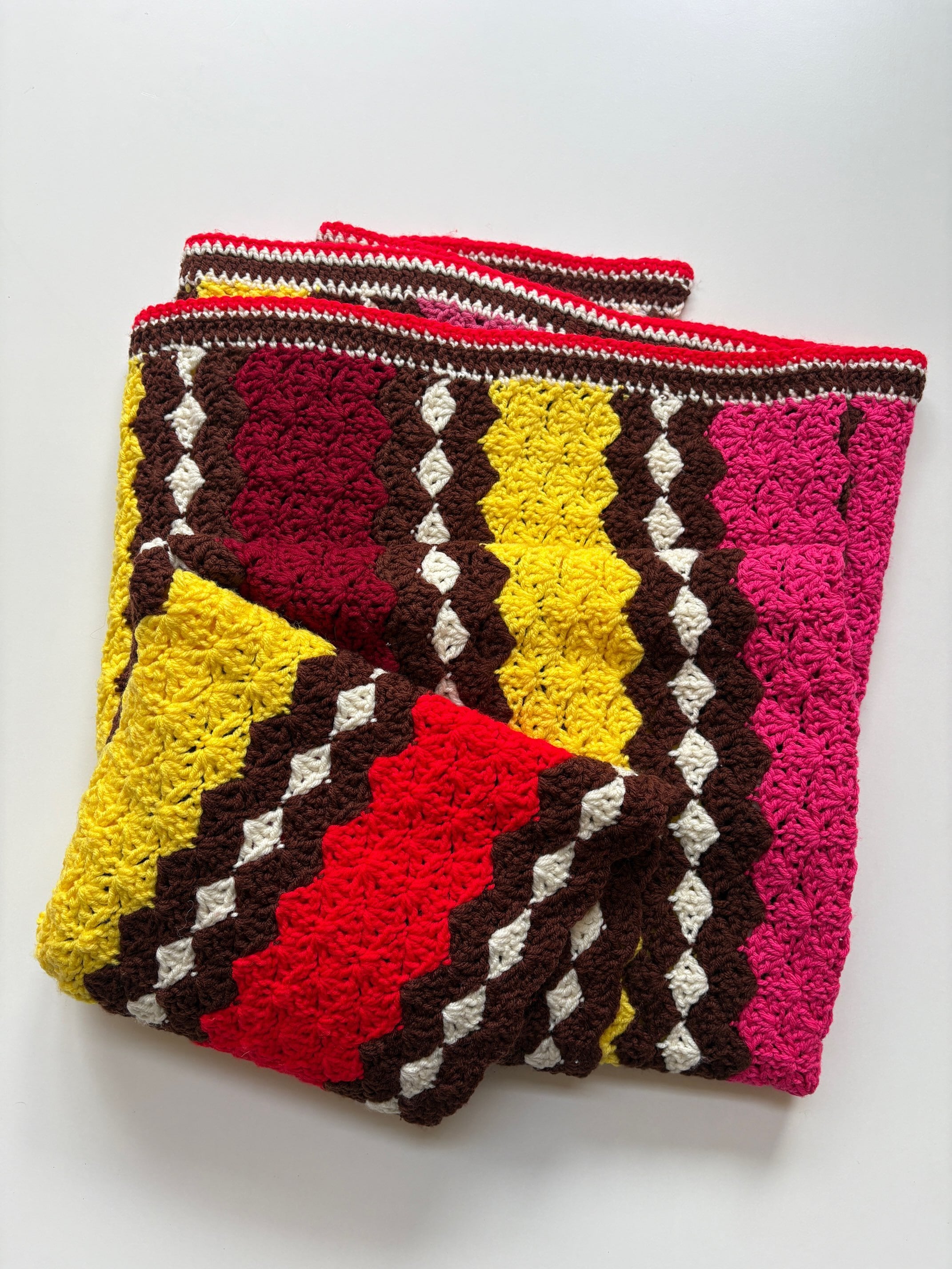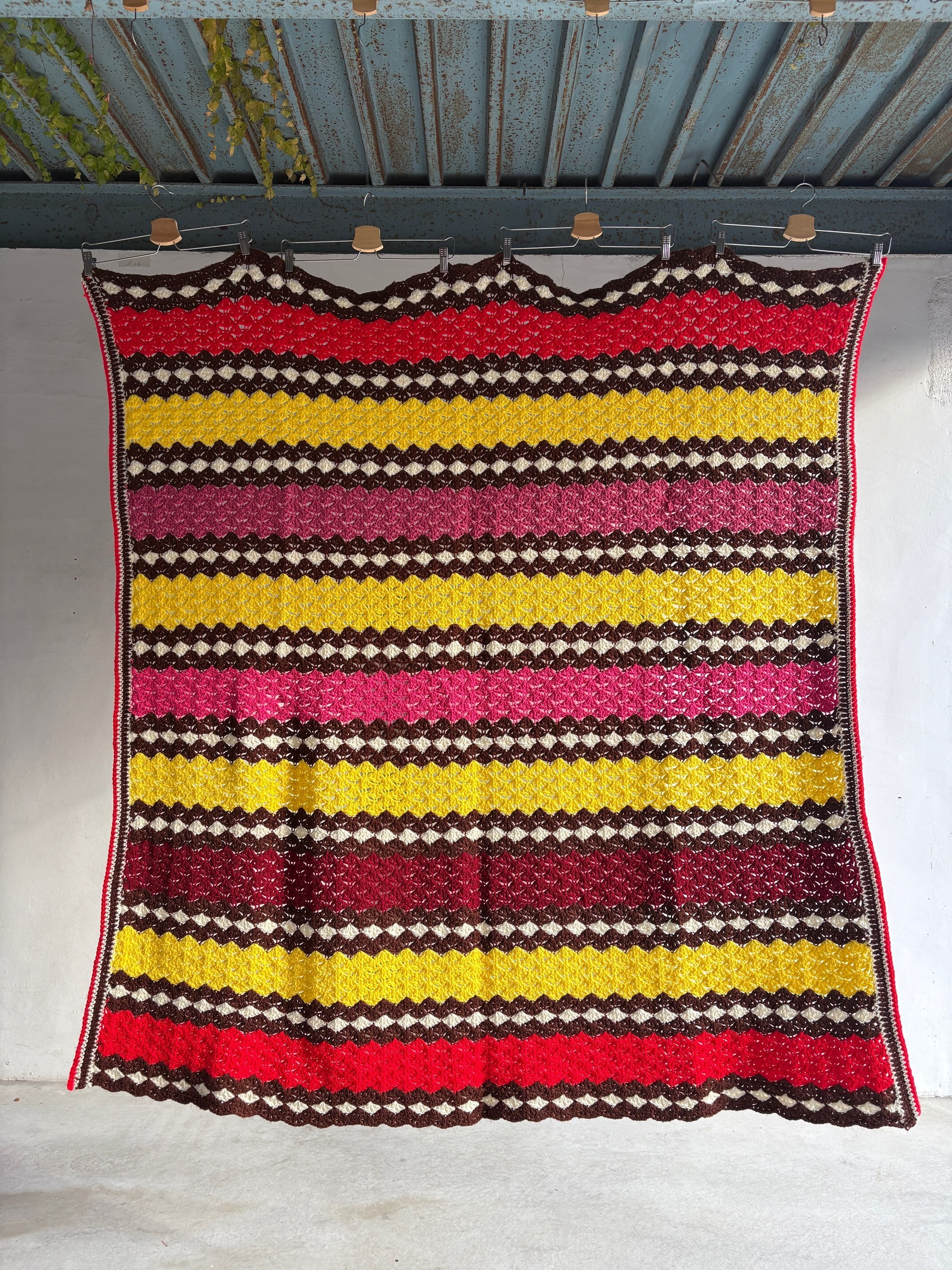 アメリカにて 1960年代 ミッドセンチュリー 期に手編み制作されたアクリルラグです。